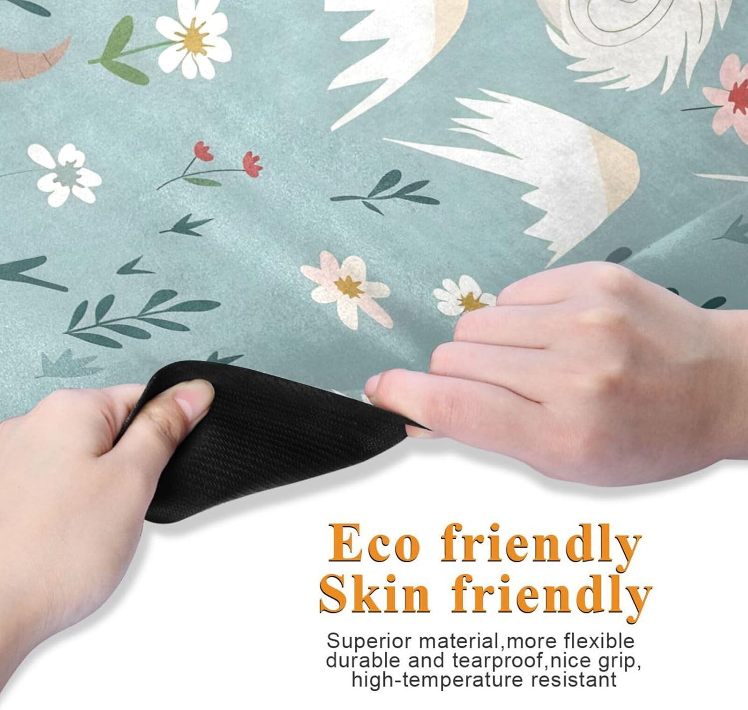 Non-Slip Fitness Mats: Suede & Natural Rubber. They are truly healthy and recyclable. Absorb sweat quickly. Ideal for your hot yoga, pilates, bikram, family picnic, and kids’ play mats. Moreover, you can have a rest after exercise.