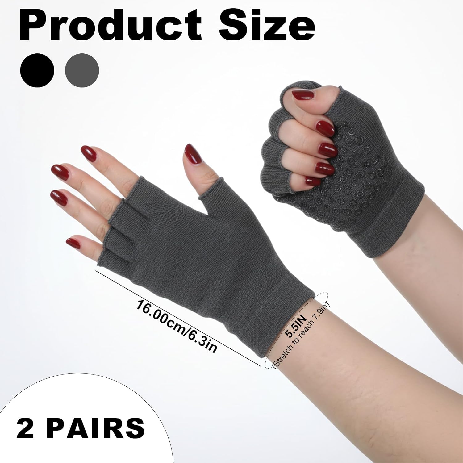 Package Contents: 2 Pairs Non Slip Yoga Gloves for Women
