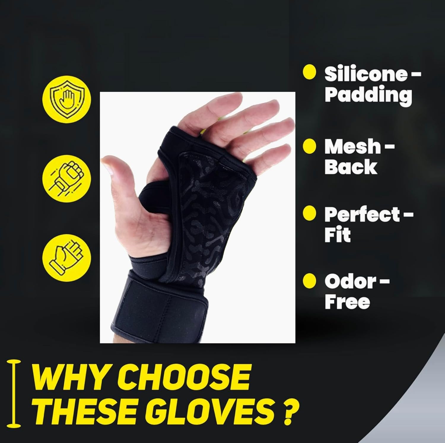 Advanced Silicone Padding for Palm ProtectionBreathable Open-Back DesignCustomizable Velcro Fit – Perfect for Men & Women: Available in 5 sizesIdeal for Strength & Functional TrainingBuilt-in Wrist Wraps for Stability & SupportTrusted Quality & Brand Satisfaction Guaranteed.
