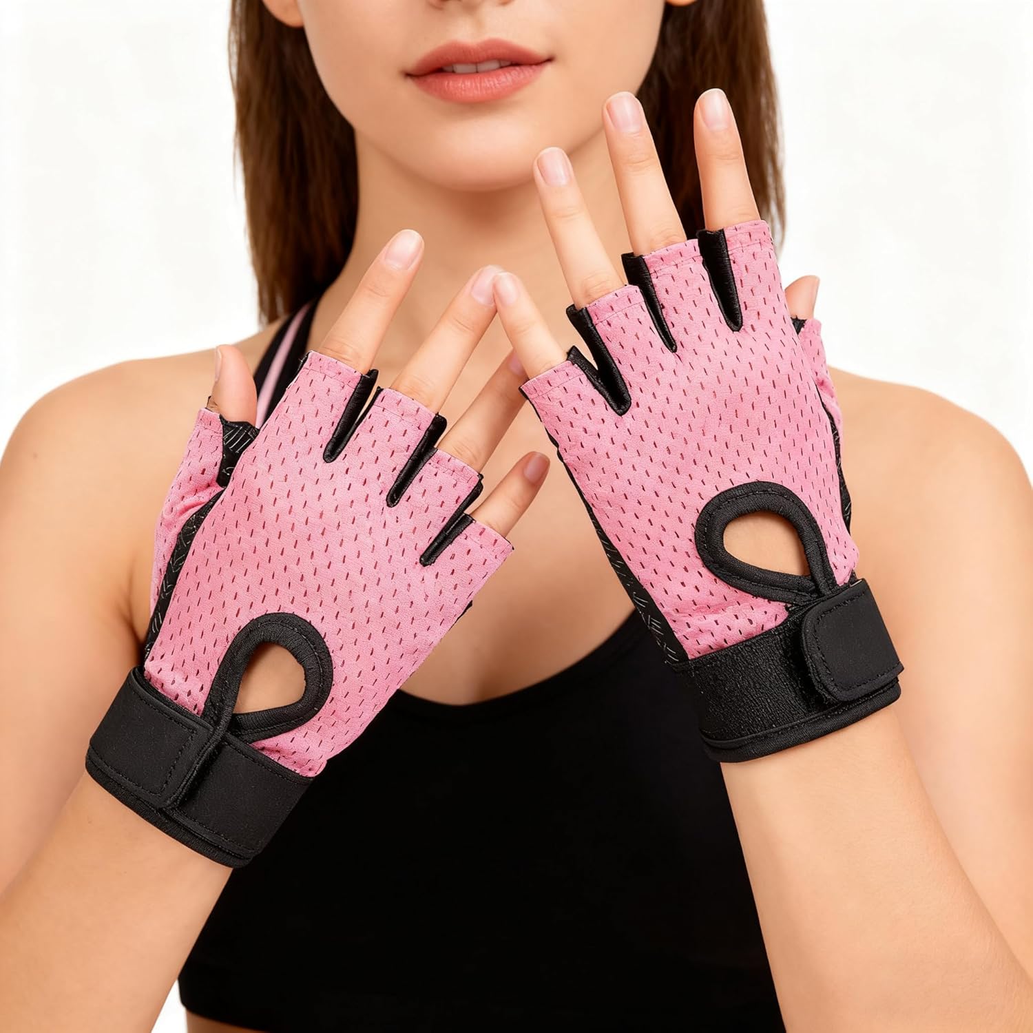 Pink Anti-Slip & Long-Lasting – These pink fingerless workout gloves can increase friction force effectively, allowing for easier operation of various fitness equipment. Additionally, the exquisite stitching reinforces the overall structure of the gloves, ensuring enhanced durability for extended use, while the pink hue adds a vibrant touch to your gym look.