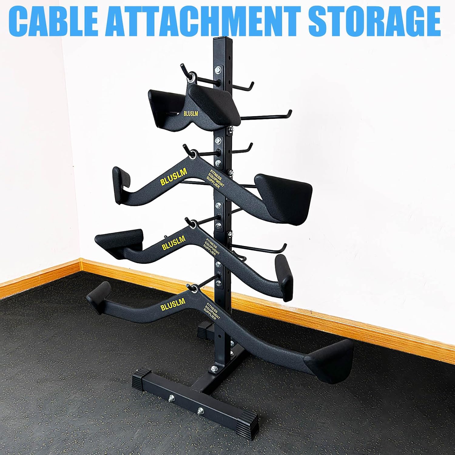 Multi-Use Storage Rack: Our gym storage rack is a nice storage unit which is perfect for a wide range of cable attachments. Such as Hand Ropes, Lat Bars, D-Handles, Straight Bars, V-Bars and others. This gym rack organizer works well at keeping the fitness bars in place