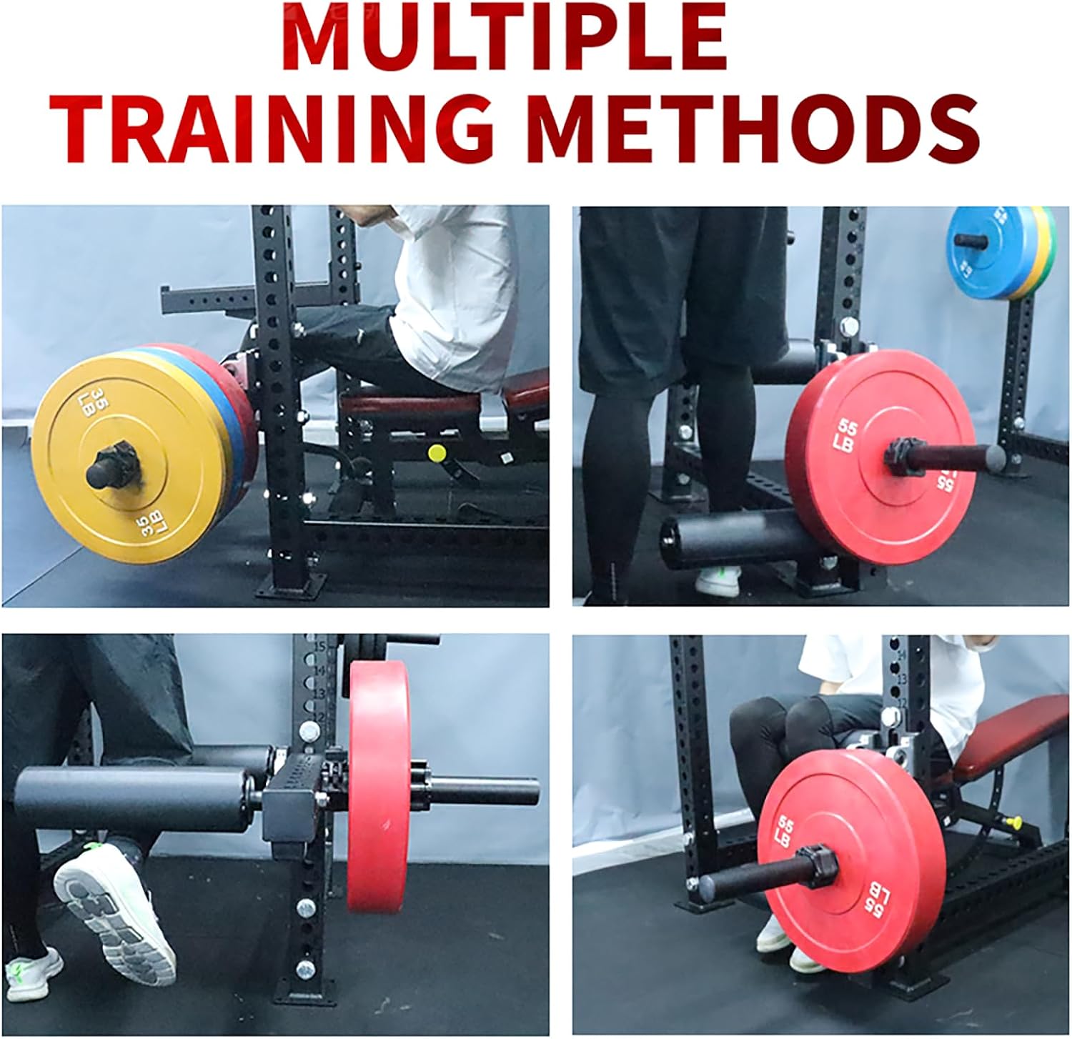 There are more sizes to choose from for leg extension machine. Leg extension rack attachment has 5/8″ (16mm) or 0.7″ (18mm) or 1″ (26mm) aperture and fits 2 inch / 3 inch / 2.37 inch width squat rack, power rack attachments maximum load 175lb fit all 1 inch / 2 inch olympic weight plates. Please measure your aperture and the diameter of the barbell bar before purchasing. To avoid situations where the size does not match.