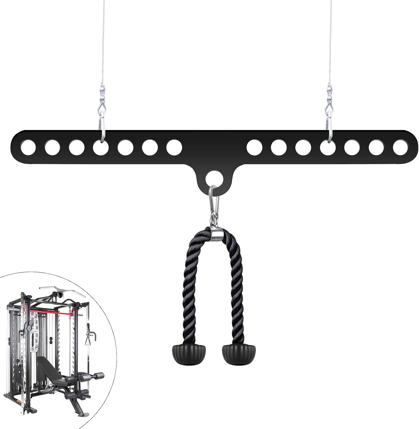 The surface of the product is electrophoretic coating, such as violent impact will occur the phenomenon of paint loss.We choose 5MM heavy-duty steel for manufacturing and a triangular design to make the triceps bar more stable. You can adjust the width of the multi-handle wide lateral pull-down bar to expand the range of motion and better help back muscles exercise.