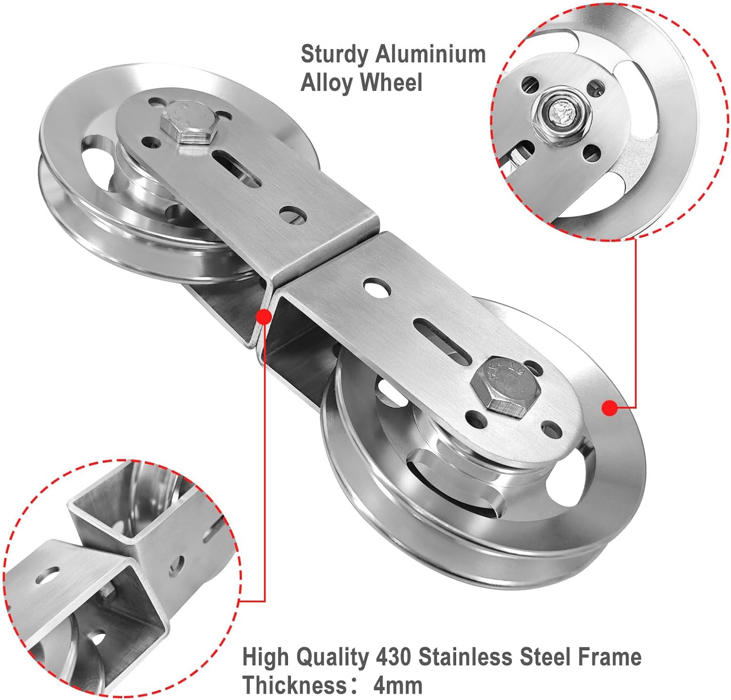 Swivel Dual Pulleys 360° Rotation Roller Double Pulley Wheel for DIY Home Gym Cable Machines Silent Bearing Swivel Groove Wheel Pull Down Attachment Weight Lifting
