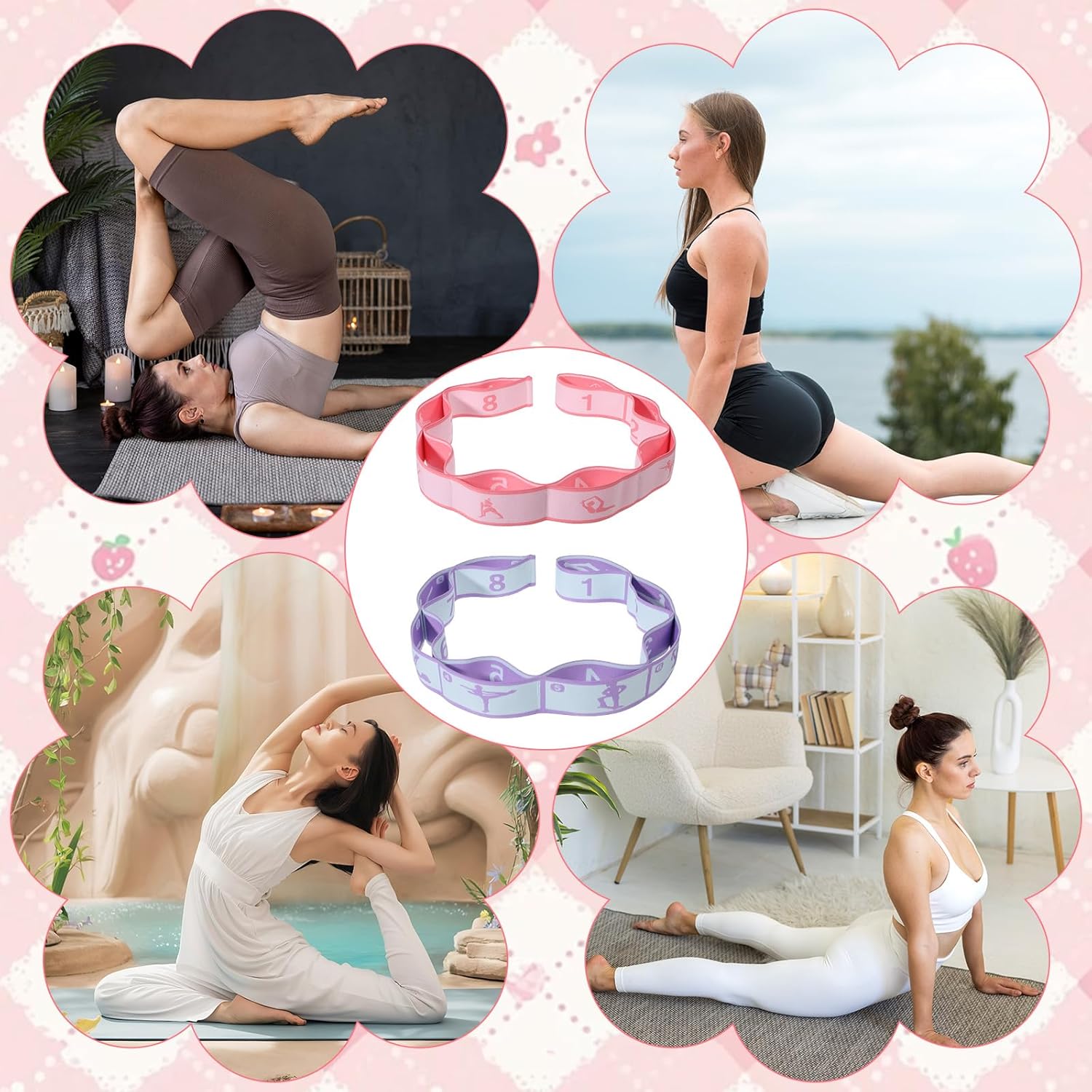 Adjustable Stretch Strap, 2 Pcs Elastic Yoga Stretching Strap with Loops 8-Loop Dance Stretch Band Stretching Bands for Flexibility Multi-Loop Exercise Bands for Pilates, Latin and Yoga