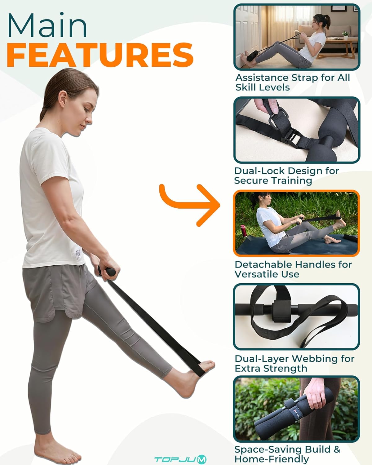 Versatile Full-Body Stretching & Strengthening Device. This all-in-one system functions as a high-performance hamstring stretcher, quads stretcher, calf stretcher, or back and shoulder stretching device to unlock peak flexibility. Mounts on a door to serve as a sturdy sit-up bar for ab workouts, Spanish squats, and reverse crunches, or transforms into a suspension training system, or use it separately as a wrist roller to effectively target your forearms.