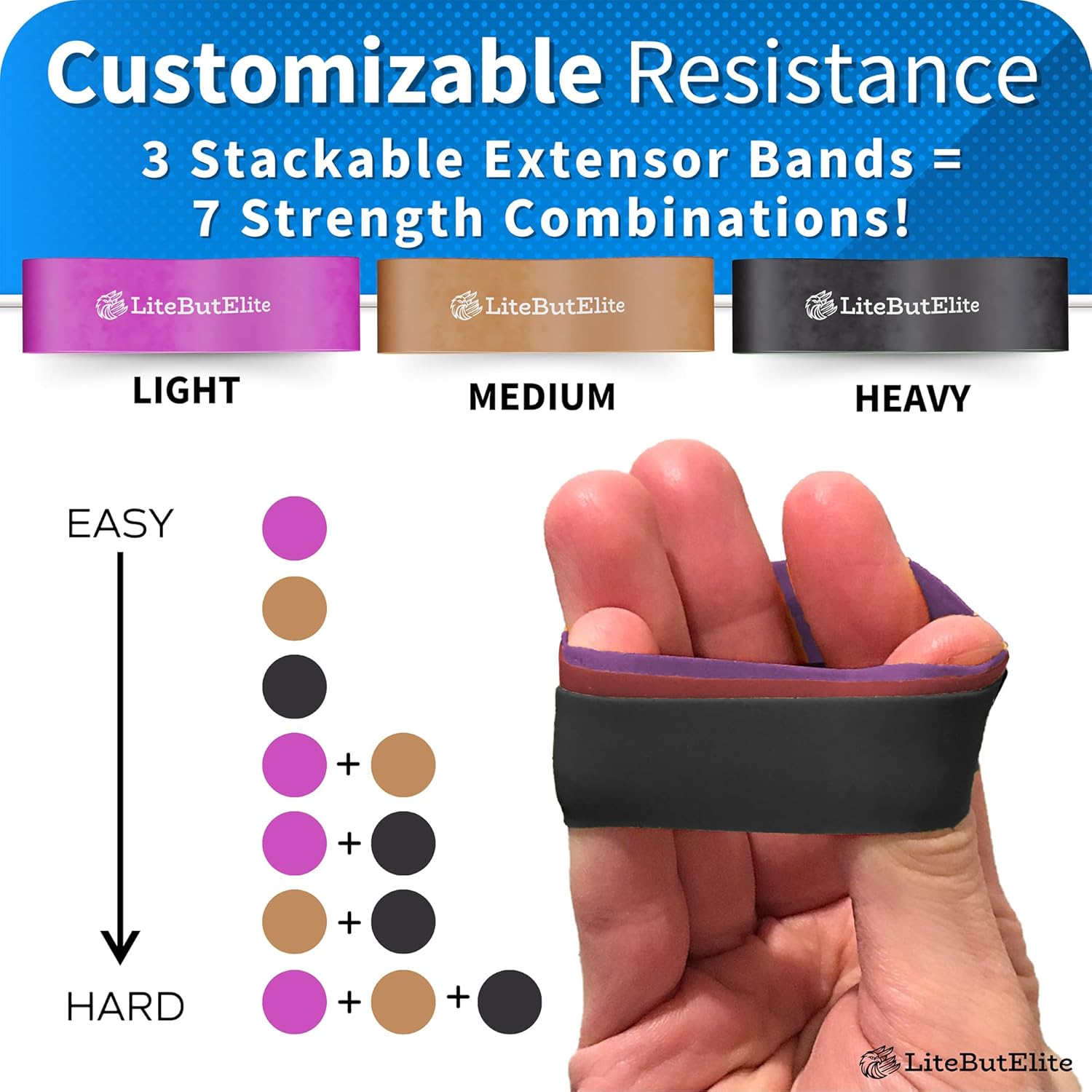 THE LITEBUTELITE IMPROVEMENT IN THIS ITEM – While most grippers are too small for adult hands, ours is larger for a better fit. We’ve switched to stackable extensor bands resulting in 7 resistance levels, a durable pouch, and an instructional guide.
