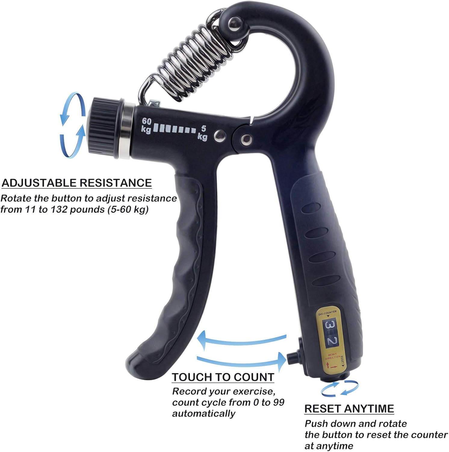 ADJUSTABLE RESISTANCE – Hand gripper resistance can be easily adjusted from 11 pounds to 132 pounds (5-60 kg), perfect for men and women with different grip strength.