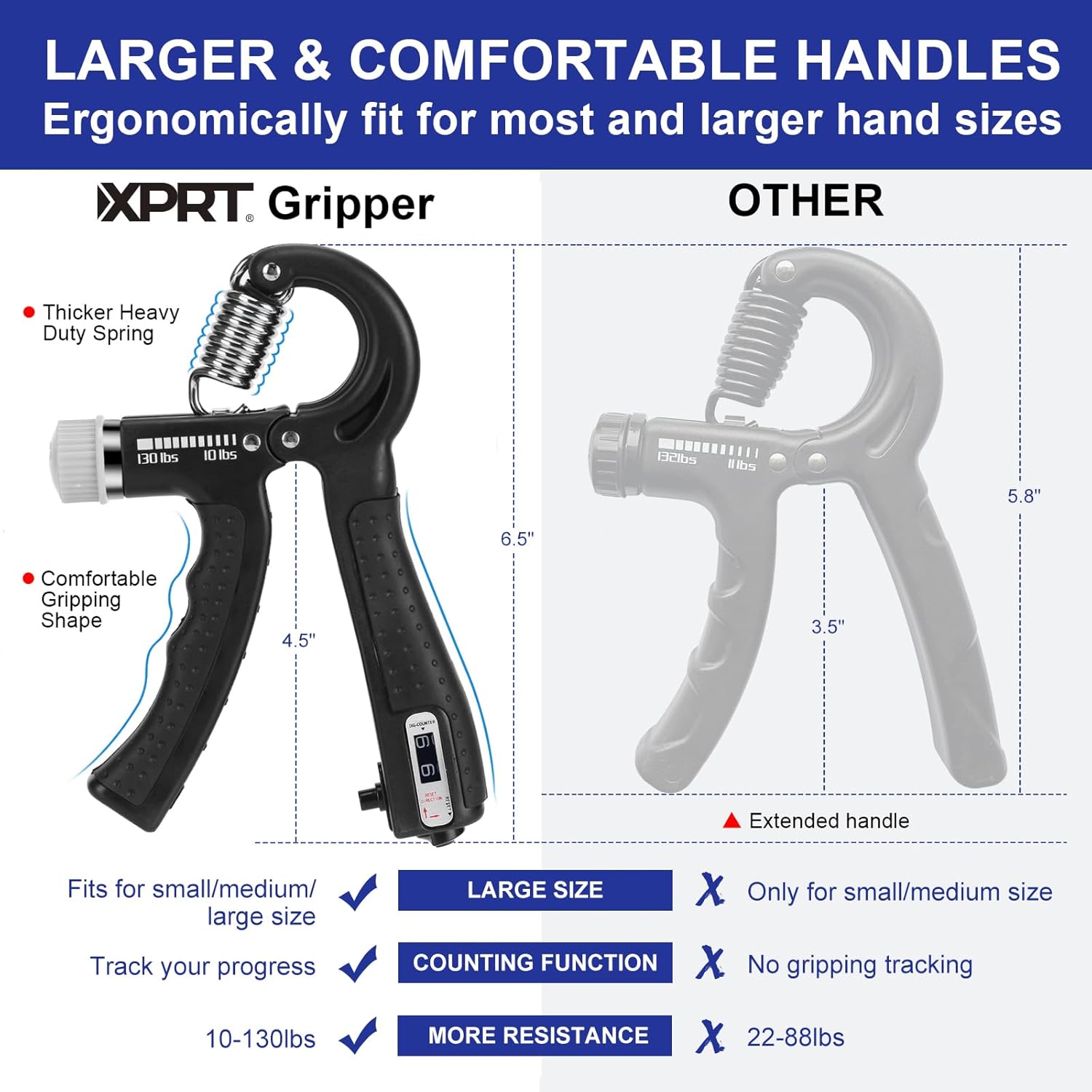 Get your grip strength and forearm development with XPRT Fitness’s professional-grade hand grip strengtheners. Our innovative 2-pack set delivers unmatched versatility and precision in resistance training, allowing you to build strength from 10 to 130 pounds progressively. Unlike basic grip trainers, our advanced design incorporates ergonomic handles and precise adjustment mechanisms, ensuring optimal comfort and targeted muscle engagement throughout your entire training session.
