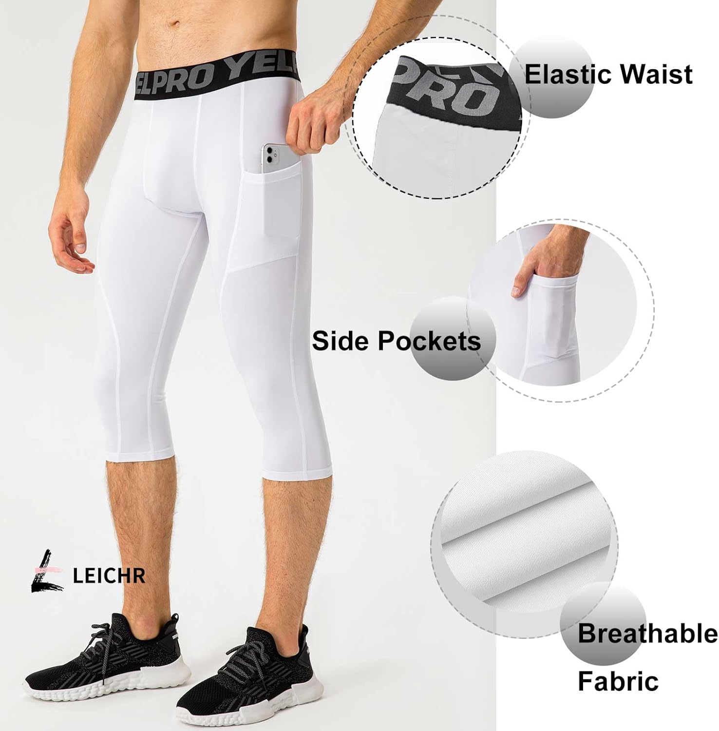LEICHR Men’s Compression Pants Cool Dry Workout Running Capris Leggings
