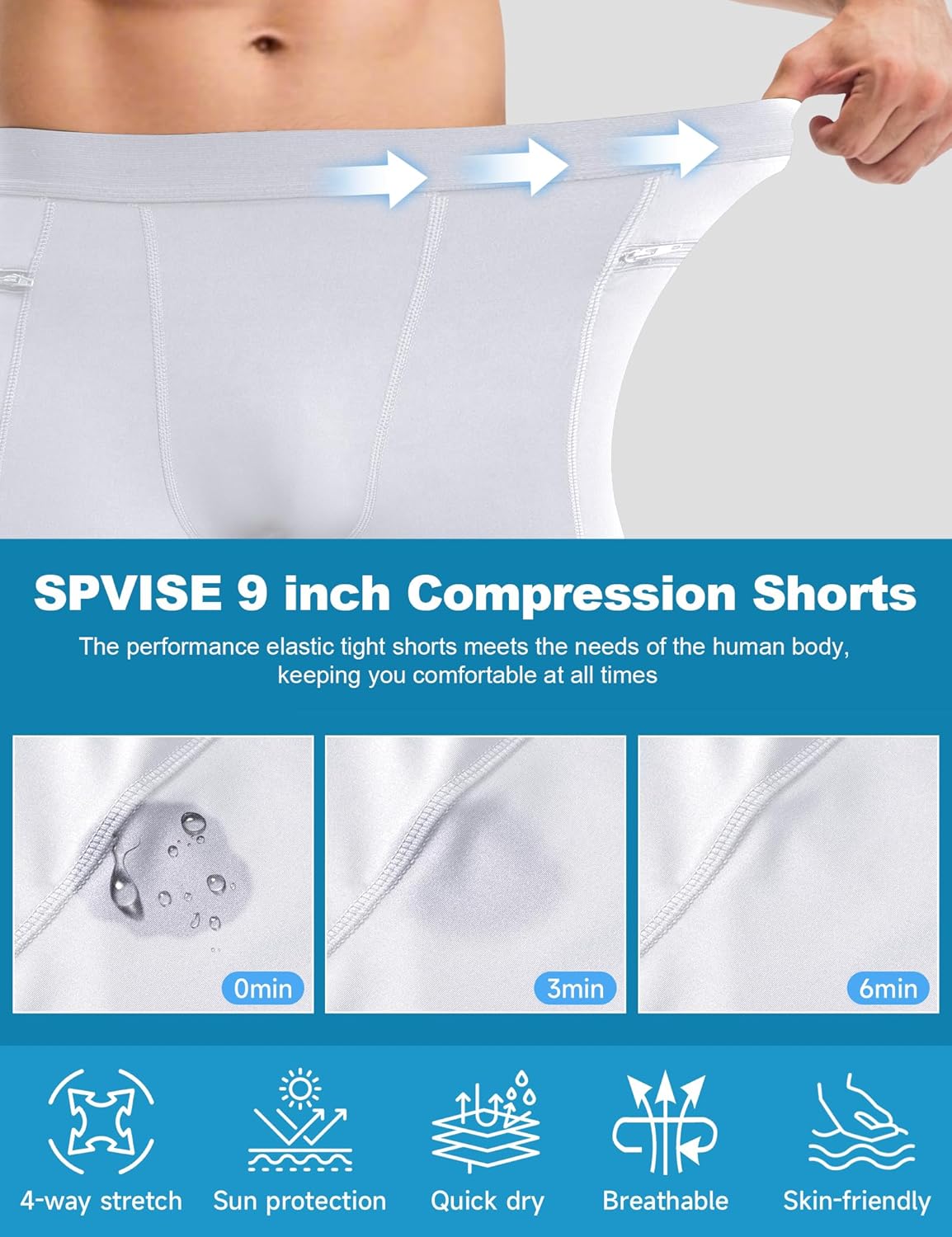 SPVISE Men’s Compression Shorts Running Workout Spandex Shorts Cooling Performance Underwear Shorts Tights with Zipper Pocket