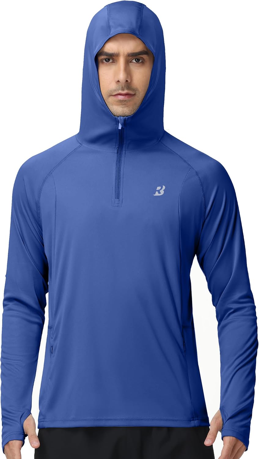 UPF 50+ fabric helps block harmful UV rays during long hours outdoors.Hooded 1/4 zip design offers adjustable coverage and quick ventilation.Thumbholes and a hidden pocket add secure fit and convenient storageBreathable, quick-dry material keeps you cool and comfortablePerfect for fishing, hiking, boating, beach days, and summer activities
