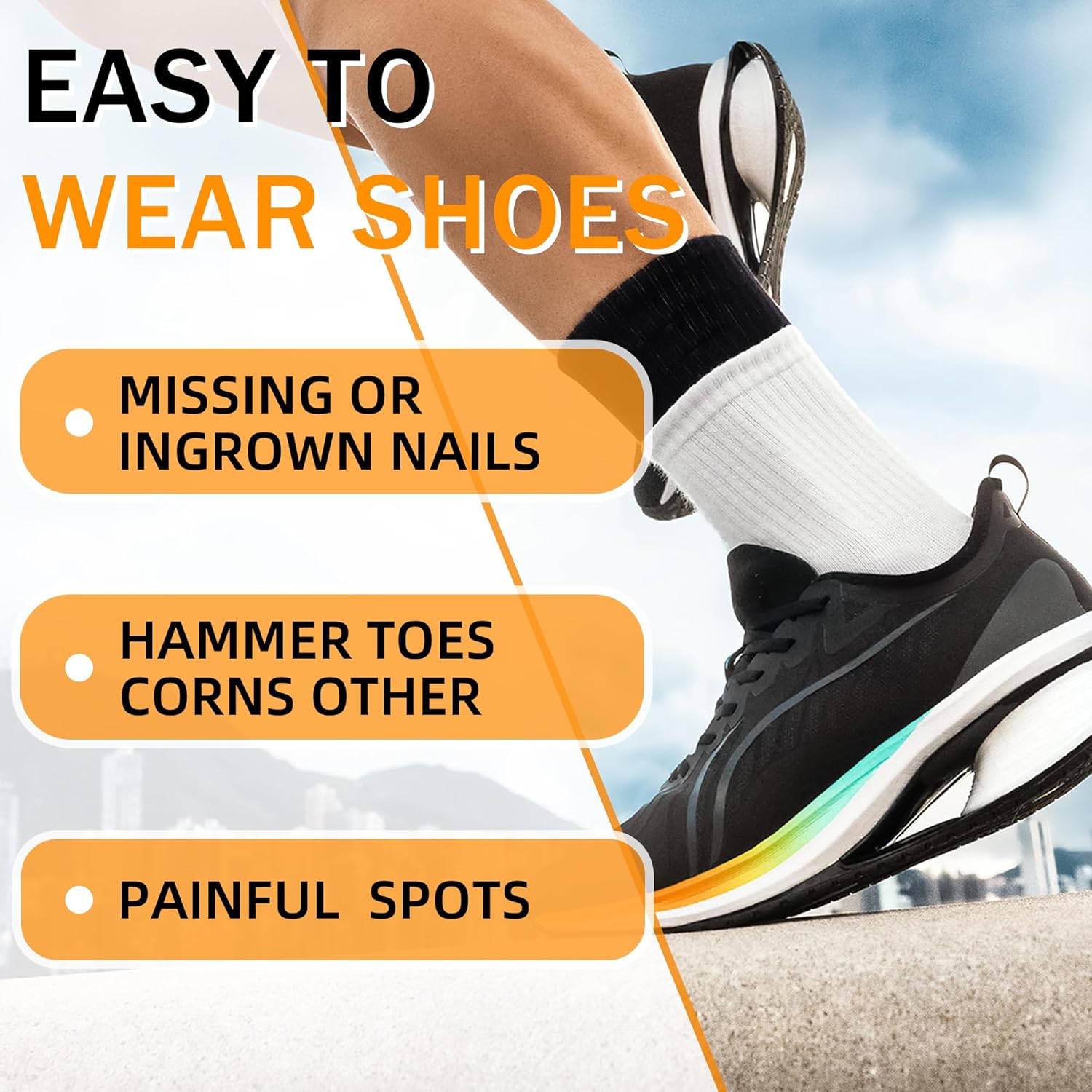 【Widely Used】These toe guards effectively reduce friction and pressure between the toes and footwear, making them ideal for walking, running, hiking, or standing for extended periods. Most users find their shoes more comfortable with these protectors in place.