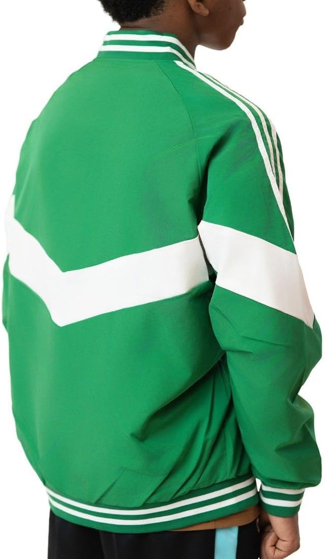 Stay active and comfortable with this stylish men’s athletic jacket. Crafted with breathable, moisture-wicking fabric, it features a bold green-and-white color combination with contrasting accents and a sleek zippered design. The jacket’s lightweight construction and ventilated panels allow for unrestricted movement during your workout or outdoor activities. With its modern athletic aesthetic and functional design, this jacket is perfect for hitting the gym, running errands, or casual wear. Size up or down for your desired fit.