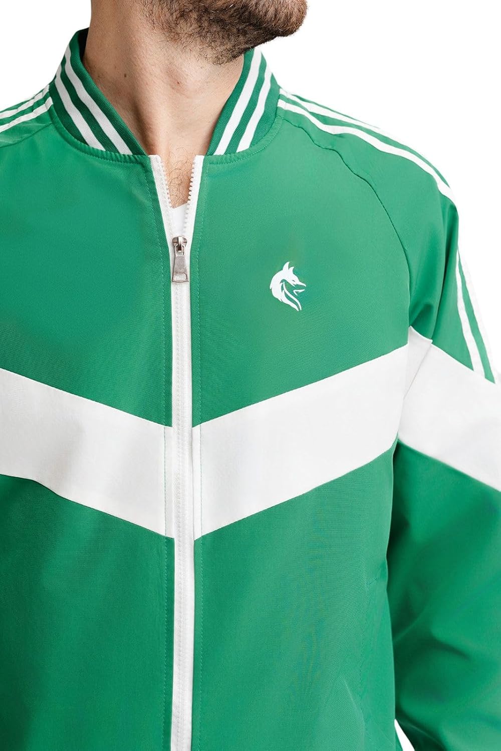 Elite Products & Apparel Men’s Athletic Track Jacket – Green and White Zip-Up, Breathable, Long Sleeve Jacket