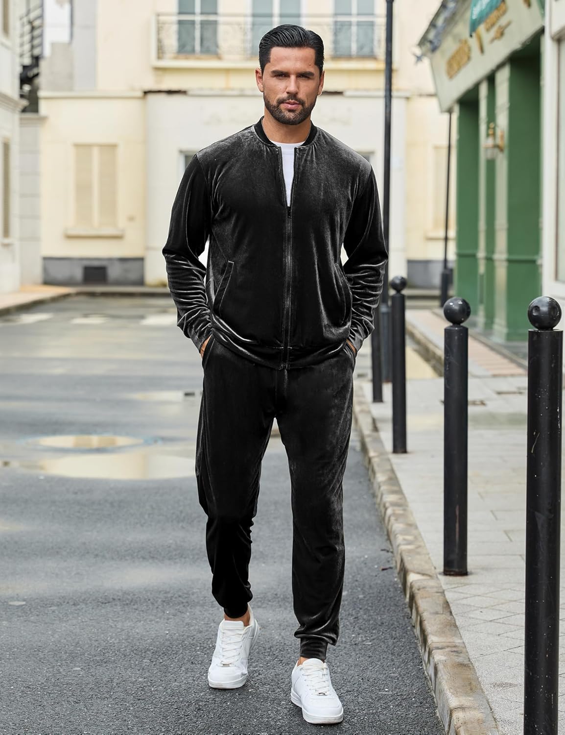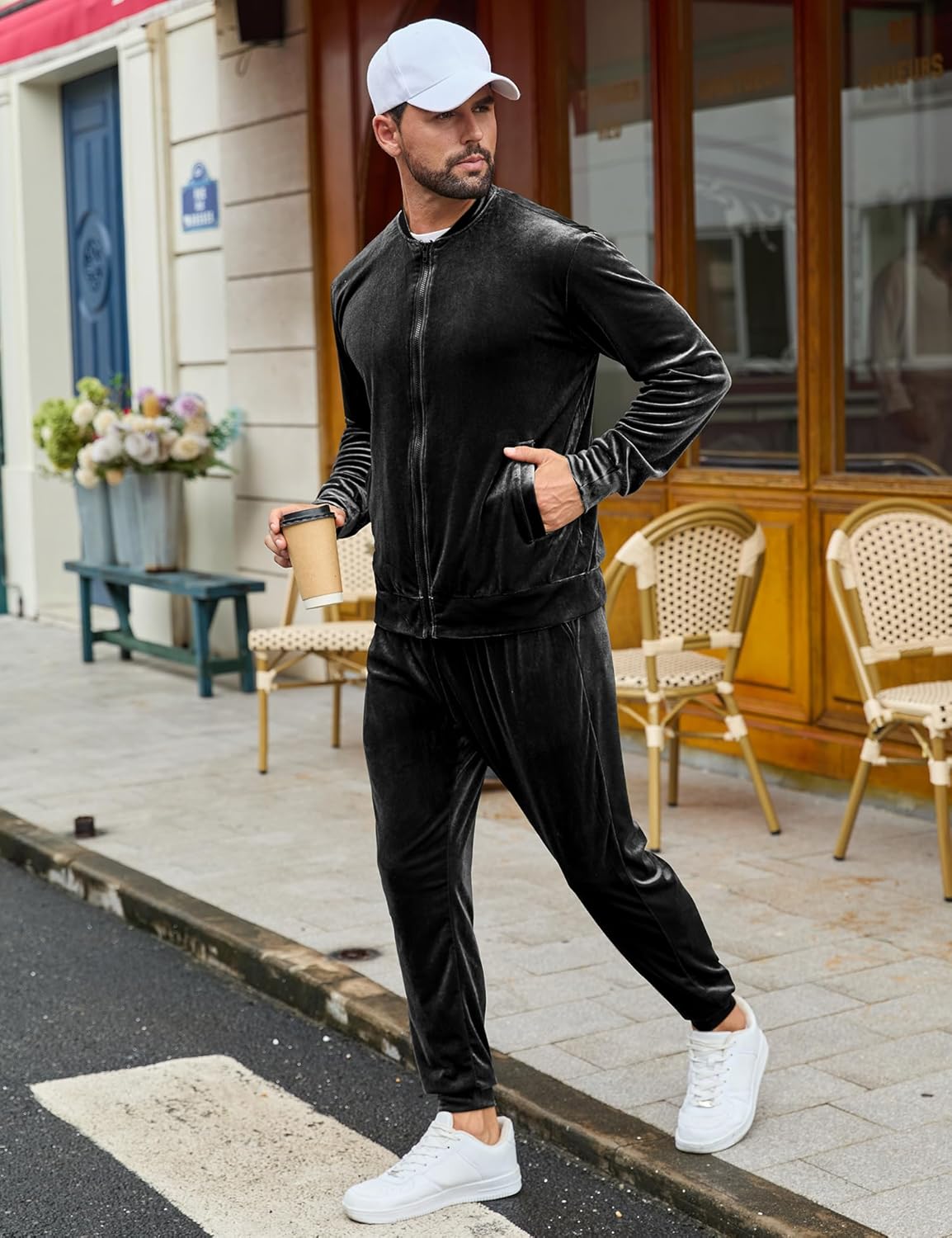 LecGee 2 Piece Velour Long Sleeve Sweatsuit For Men