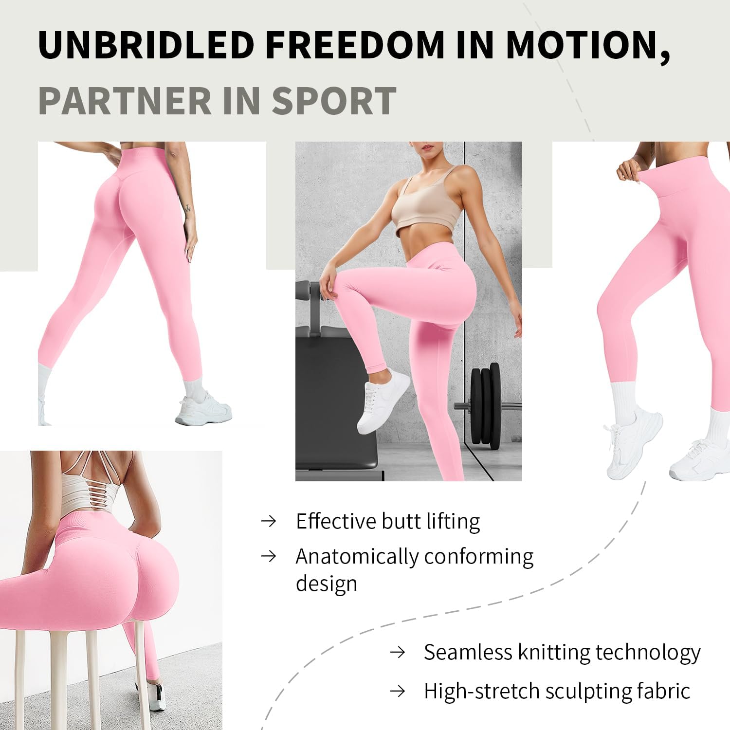 The video showcases the product in use.The video guides you through product setup.The video compares multiple products.The video shows the product being unpacked. Seamless Workout Leggings Merchant Video