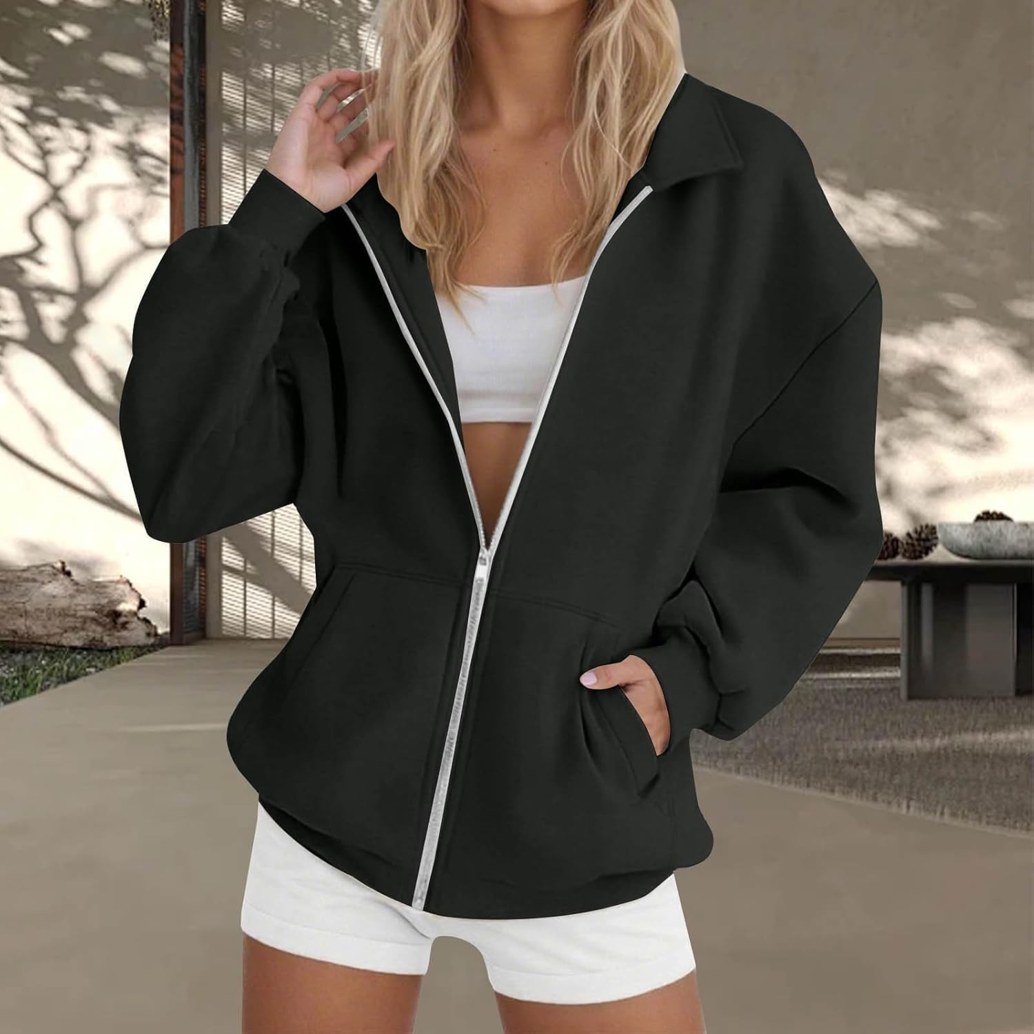 Be the first to review “Full Zip Up Sweatshirt Women No Hood Fall Winter Trendy Casual Loose Long Sleeve Workout Collared Jacket with Pockets”