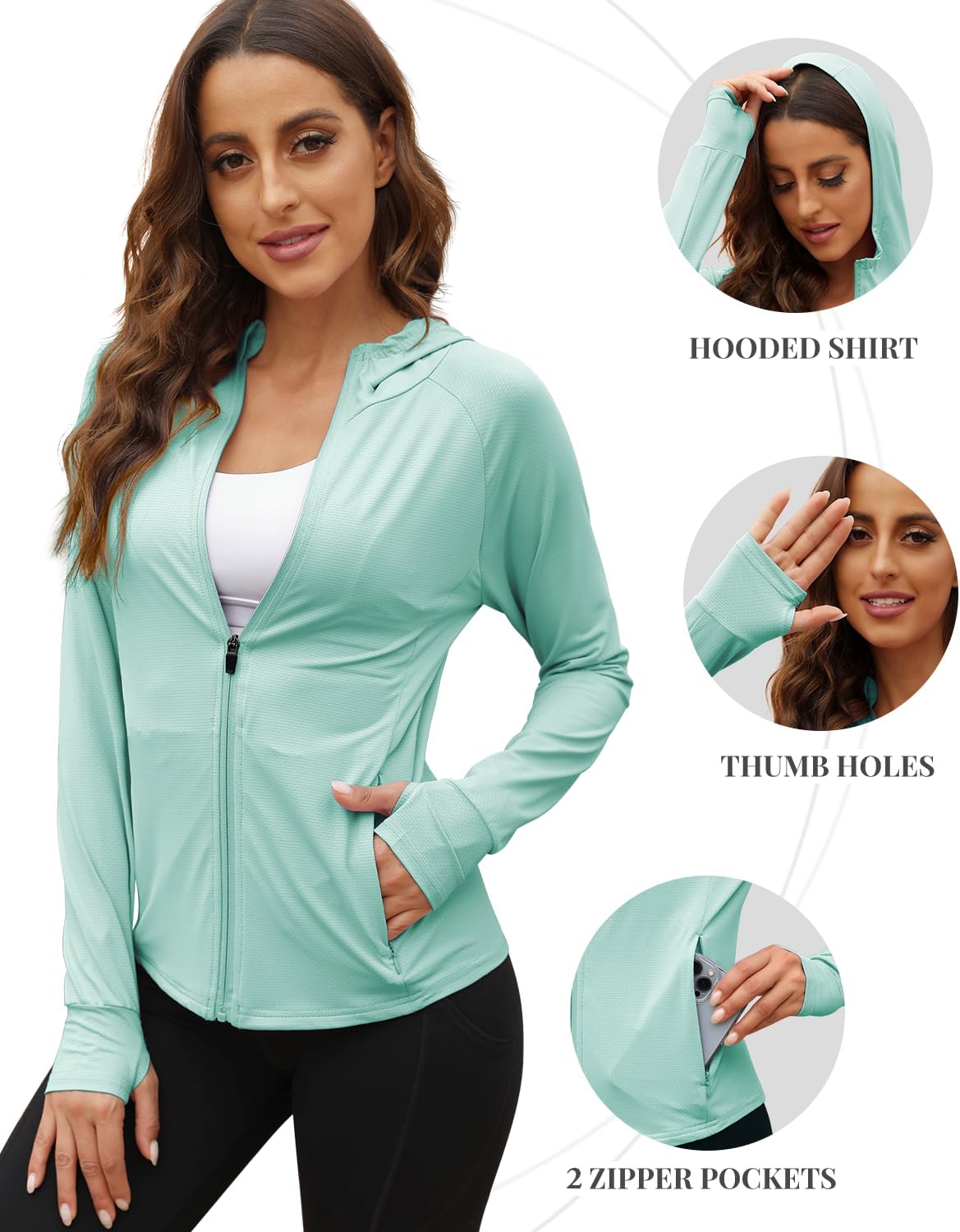 We1Fit Women’s UPF 50+ Sun Protection Jacket Hoodie Sun Shirts Hiking Running Athletic Shirt