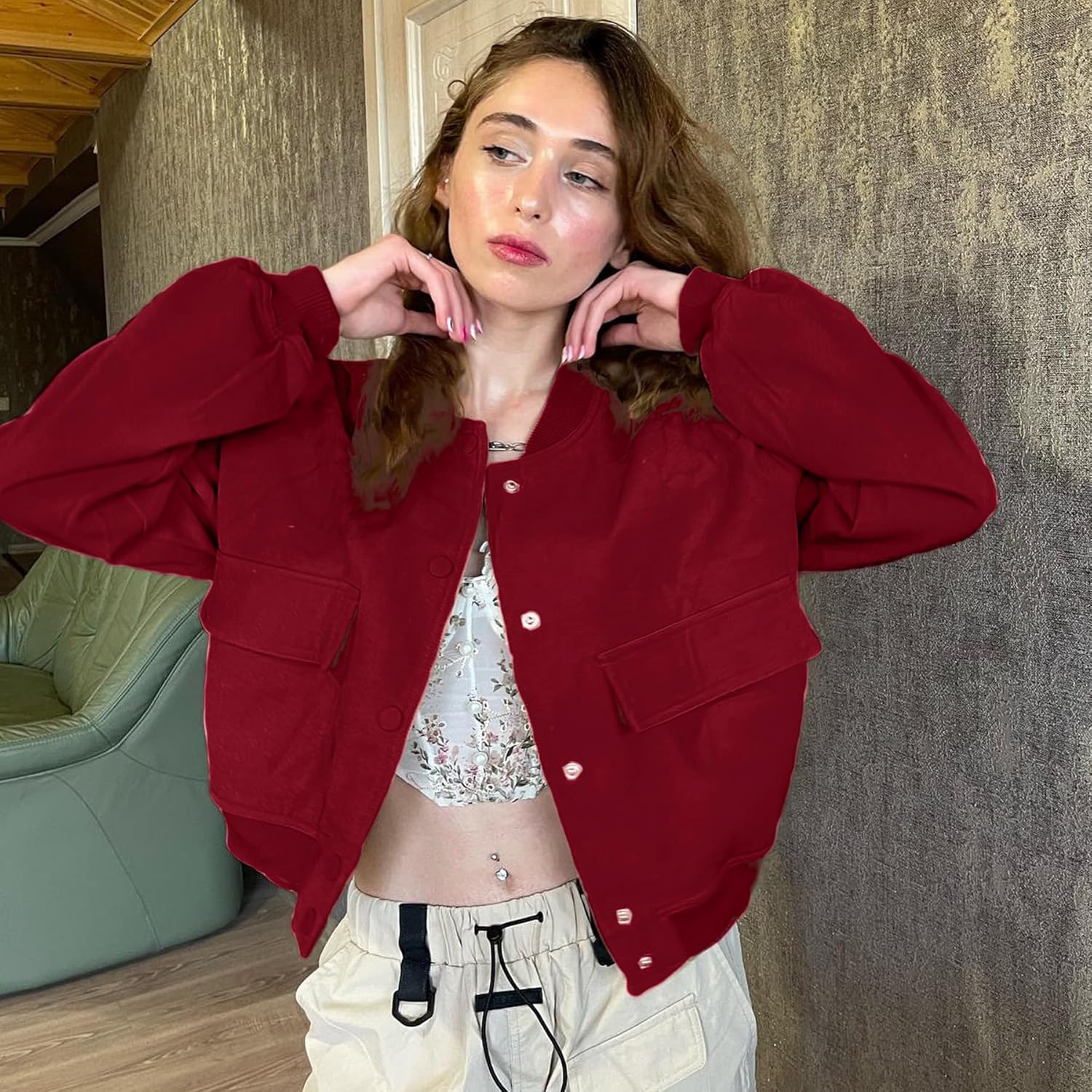Be the first to review “Zando Bomber Jacket Women 2025 – Short Cropped Jacket Women Button Down Long Sleeve Casual Varsity Jackets with Pockets”