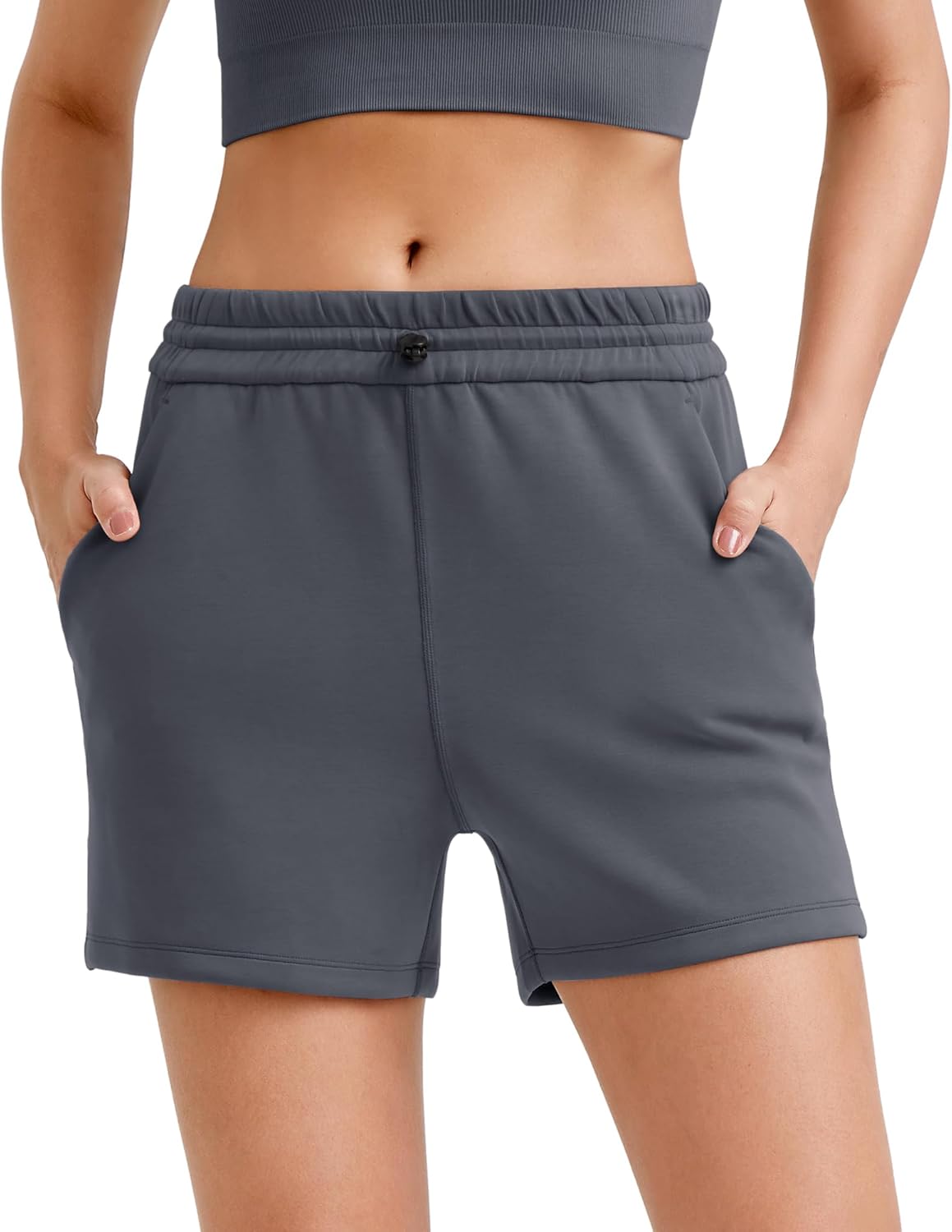 G4Free Athletic Shorts for Women Shockcord Sweat Shorts Summer Casual Lounge Shorts with Pockets Smoofit Modal Soft