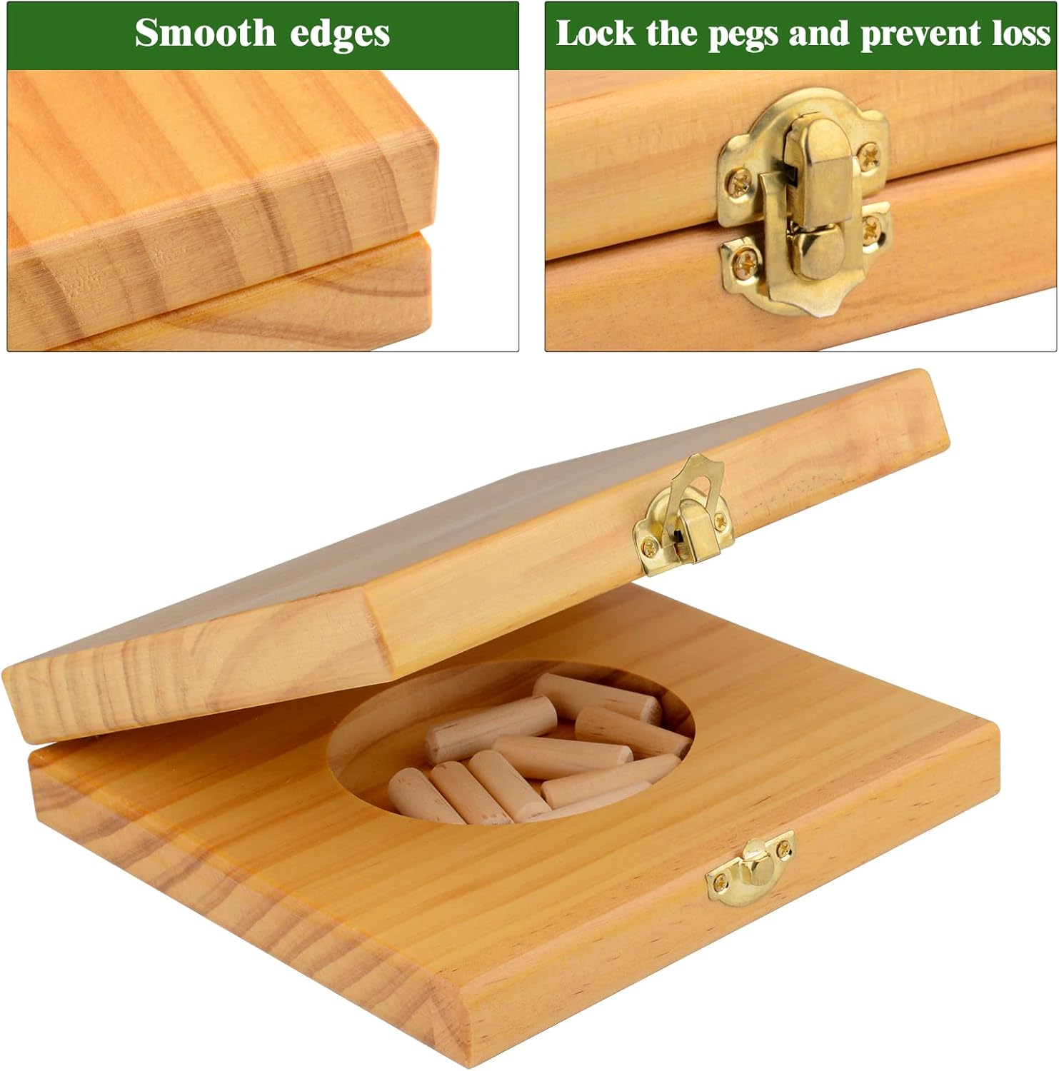 The Board and pegs are made using natural pine wood. The treated board is flat and smooth, retaining the original wood texture. All pegs are easy to grasp and can be inserted and removed from the board with ease.
