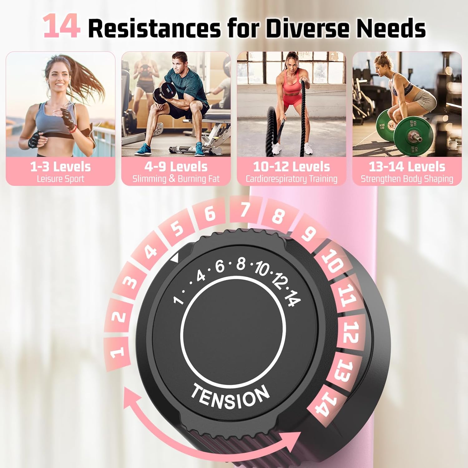 14 Resistance Levels – Customize your workout intensity perfectly as our elliptical training machines offer versatile resistance from gentle rehabilitation and light cardio to challenging high-intensity interval training. Specifically designed for seniors, men, women, beginners, and advanced athletes of all fitness levels. Progress gradually at your own comfortable pace and continuously challenge yourself as you improve.