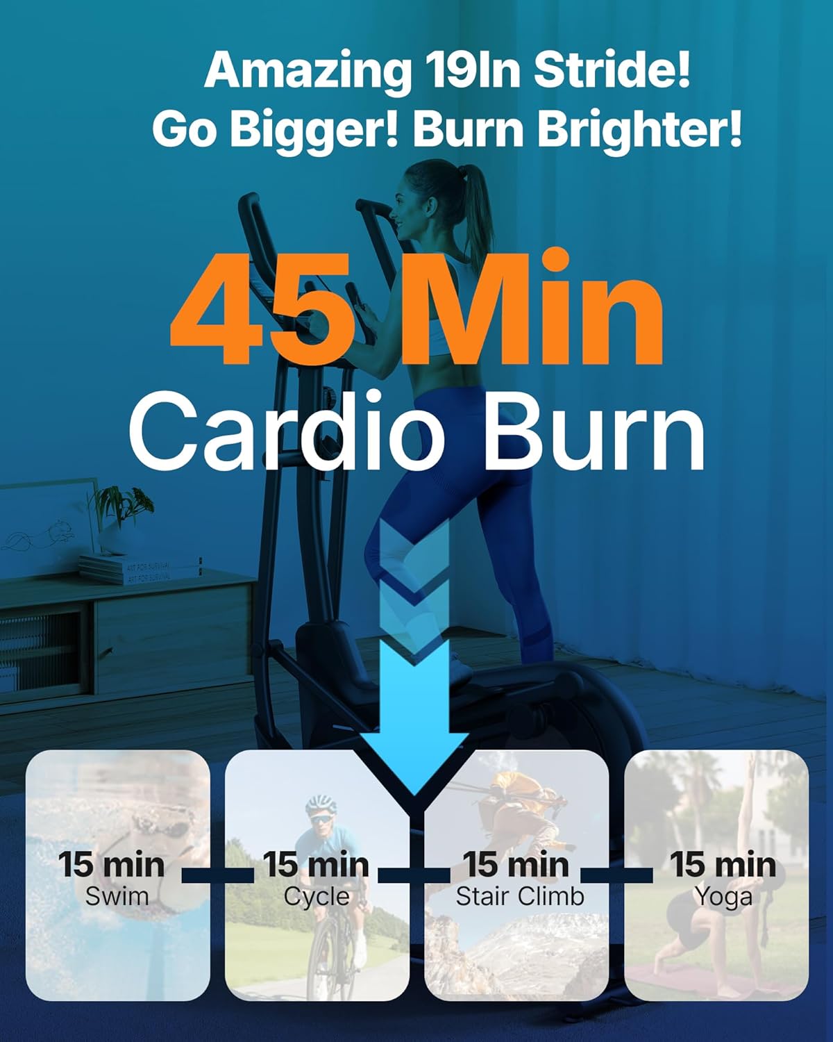 Low-Impact Full-Body Workout: The compact elliptical offers a joint-friendly, full-body workout, toning legs, glutes, arms, and core while protecting knees. Ideal for all fitness levels, injury recovery, or avoiding high-impact exercises.