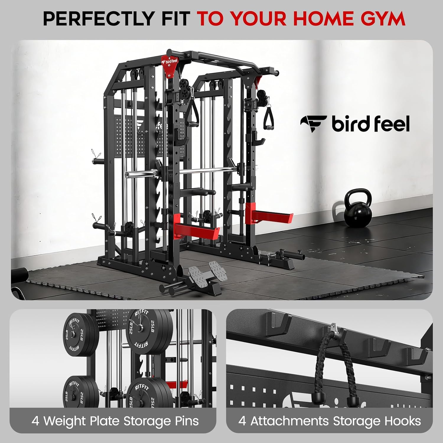 Birdfeel Multi-Function 2000LB Smith Machine Power Cage, Home Gym Squat Rack Featuring LAT Pulldown, Dual Pulley Cable Crossover, Pegboard And Attachments, Gym-Quality Power Rack, Pro Configuration