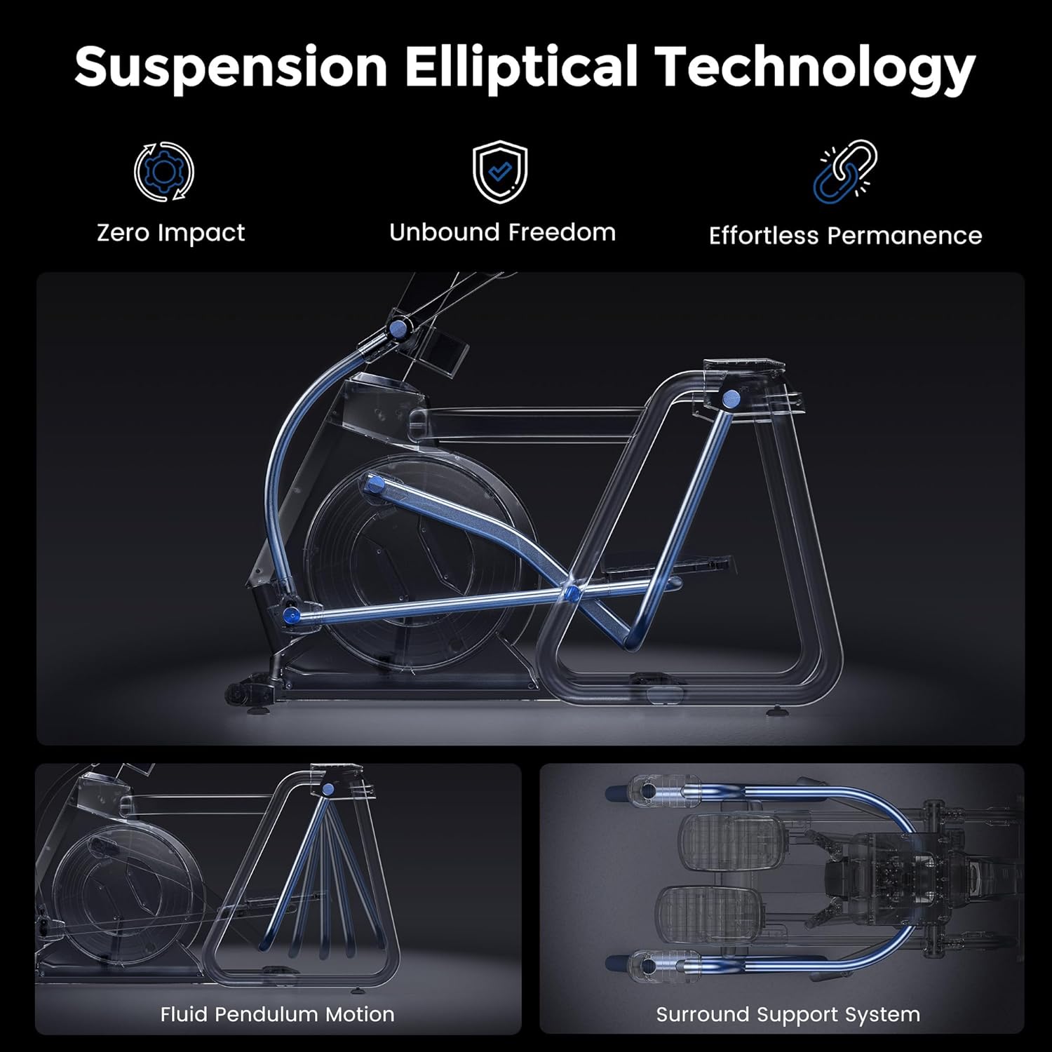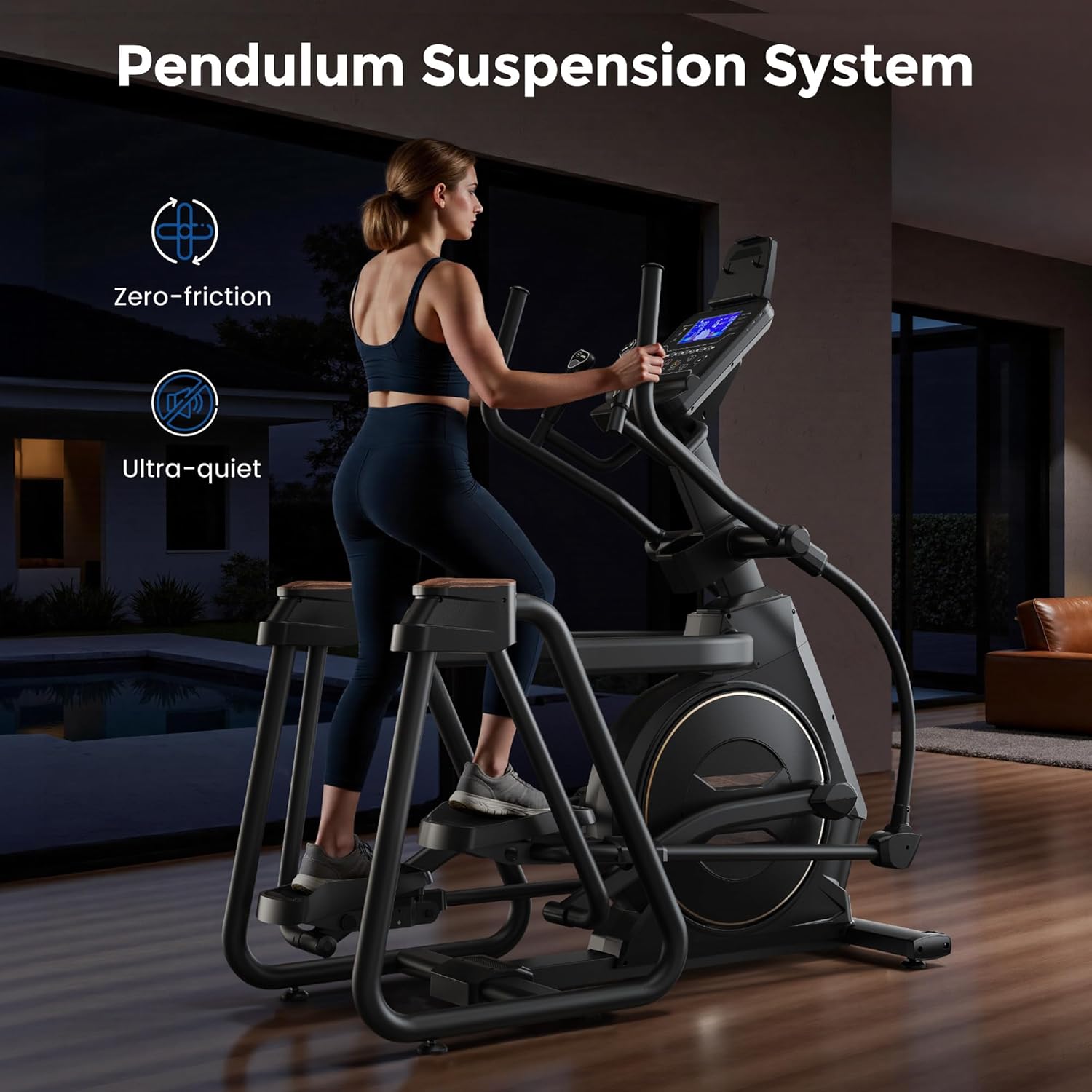 【Suspended Elliptical Technology】Break through traditional mechanical constraints, Niceday elliptical seamlessly integrates the fluid pendulum motion with 270° surround support system, delivering a premium fitness experience with zero impact, unbound freedom, and effortless permanence