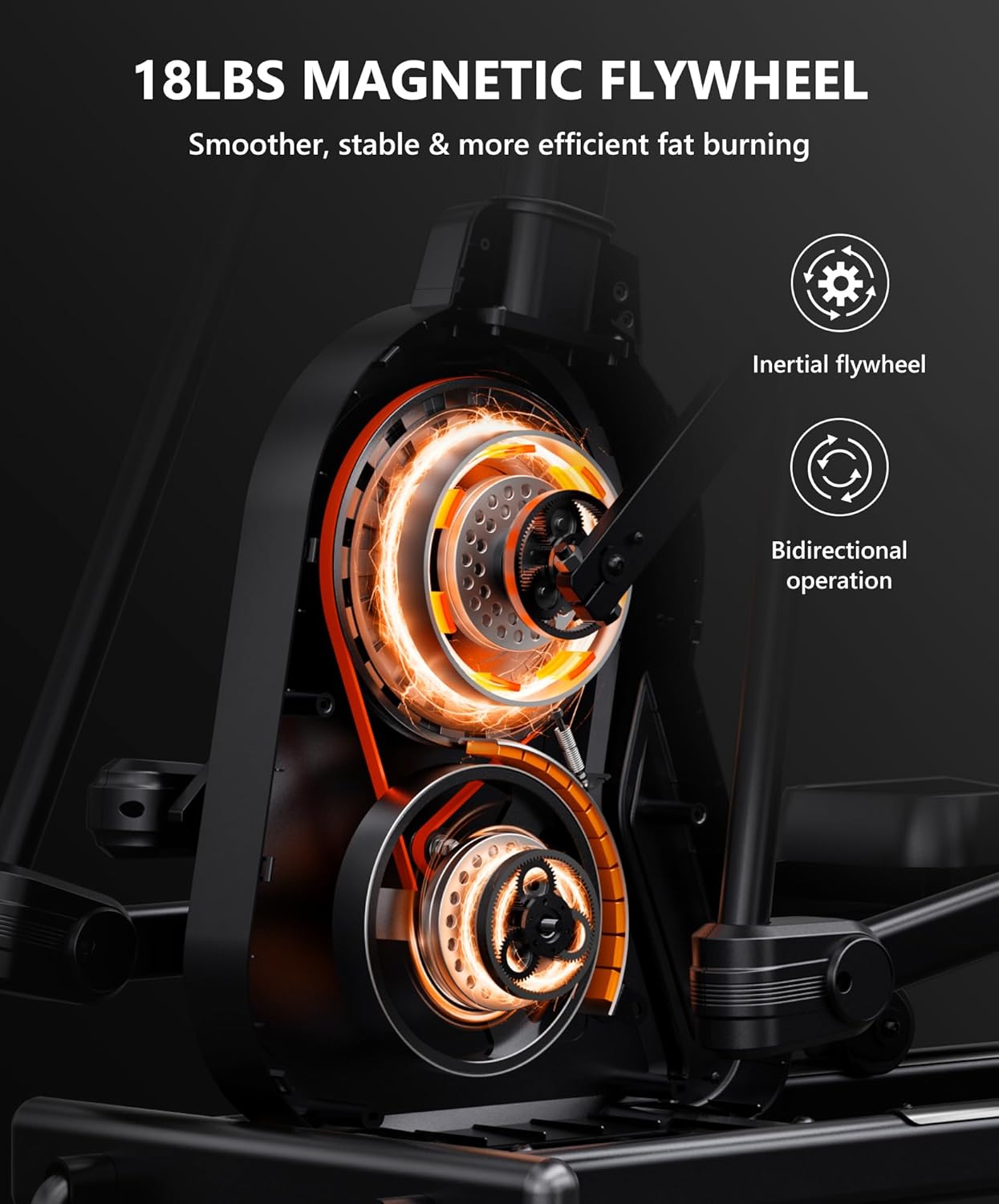 【Dual-Silence Technology <20dB】Work out anytime without disturbing your household. Our advanced dual-silence technology features HDPE rails that absorb friction sound and composite rollers that dampen vibration. This engineered system ensures whisper-quiet operation below 20 decibels—perfect for apartments, early mornings, or late nights. Experience silent, distraction-free training with this thoughtfully designed Elliptical