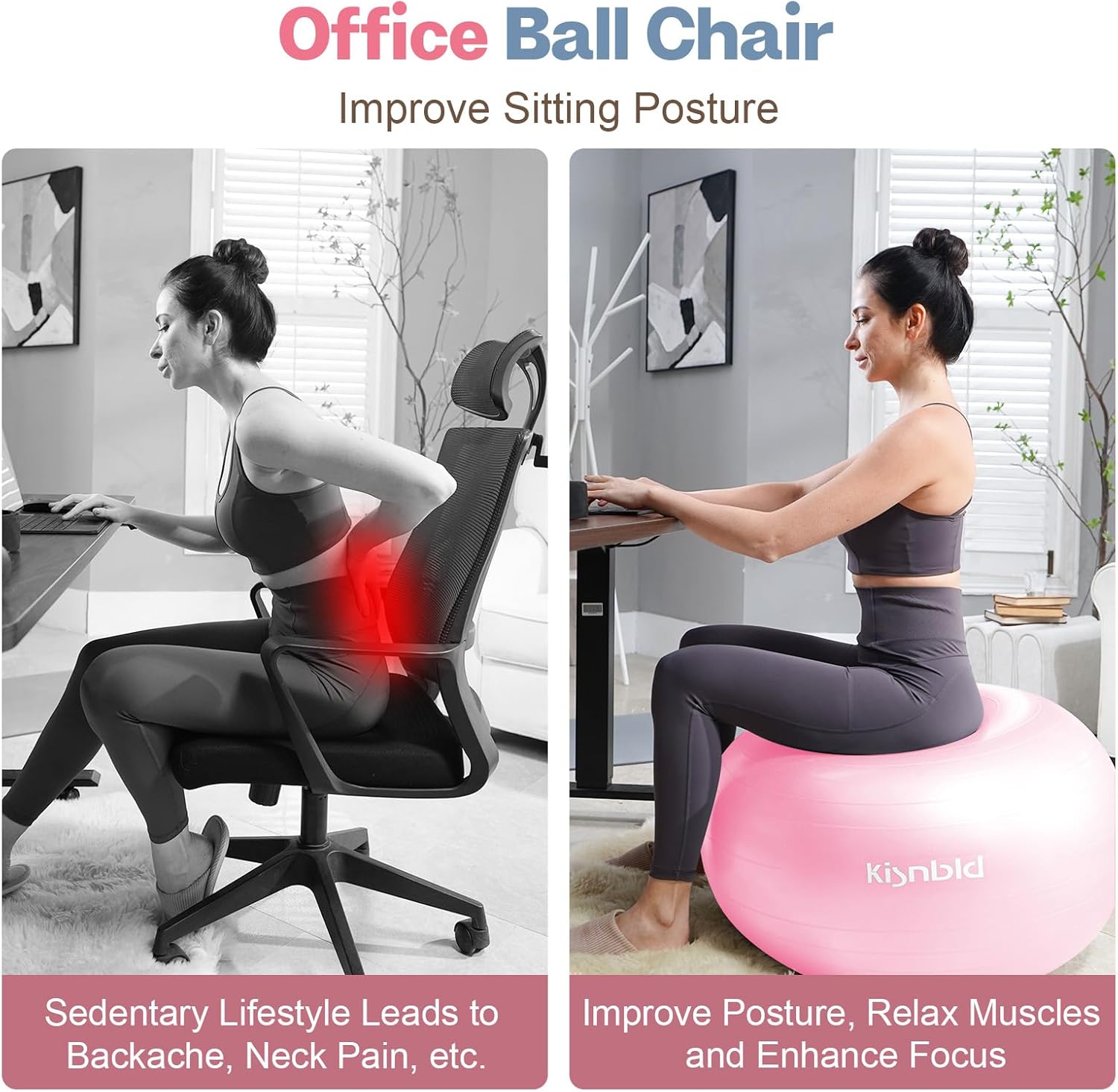 𝐀𝐍𝐓𝐈-𝐁𝐔𝐑𝐒𝐓 – Built with sturdy and non-toxic PVC material, the kisnbld balance ball won’t burst suddenly even if the ball chair is punctured in an abnormal situation, it will resist bursting and deflate slowly thanks to the honey comb structure and premium material, offering you the best protection, so no worries about the burst or losing its shape.