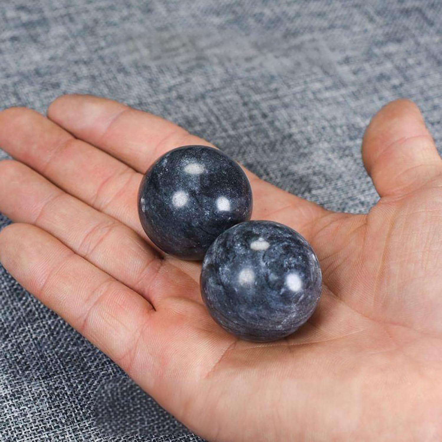 TRADITIONAL DESIGN: Authentic marble Baoding balls featuring natural gray stone patterns, perfectly weighted for therapeutic hand exercises and stress relief