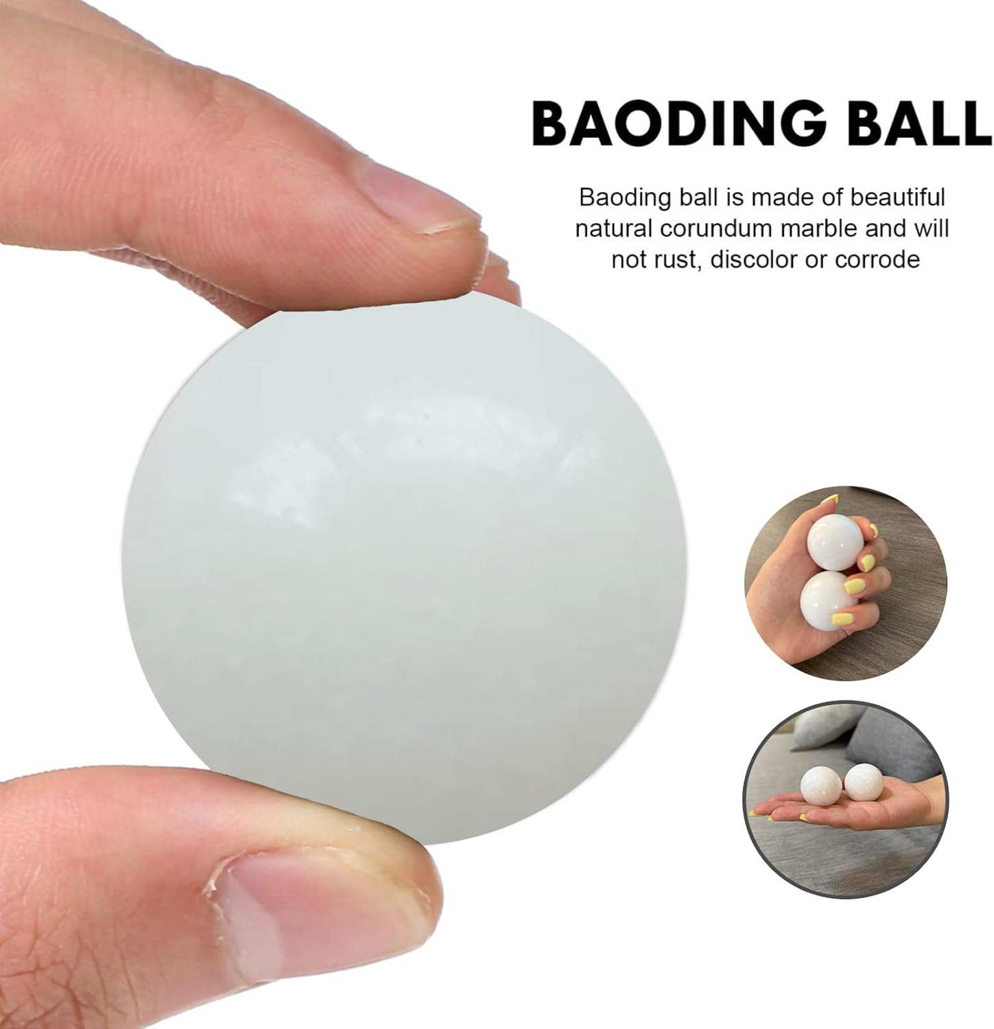 TRADITIONAL DESIGN: Authentic marble Baoding balls featuring natural white stone patterns, perfectly weighted for therapeutic hand exercises and stress relief.
