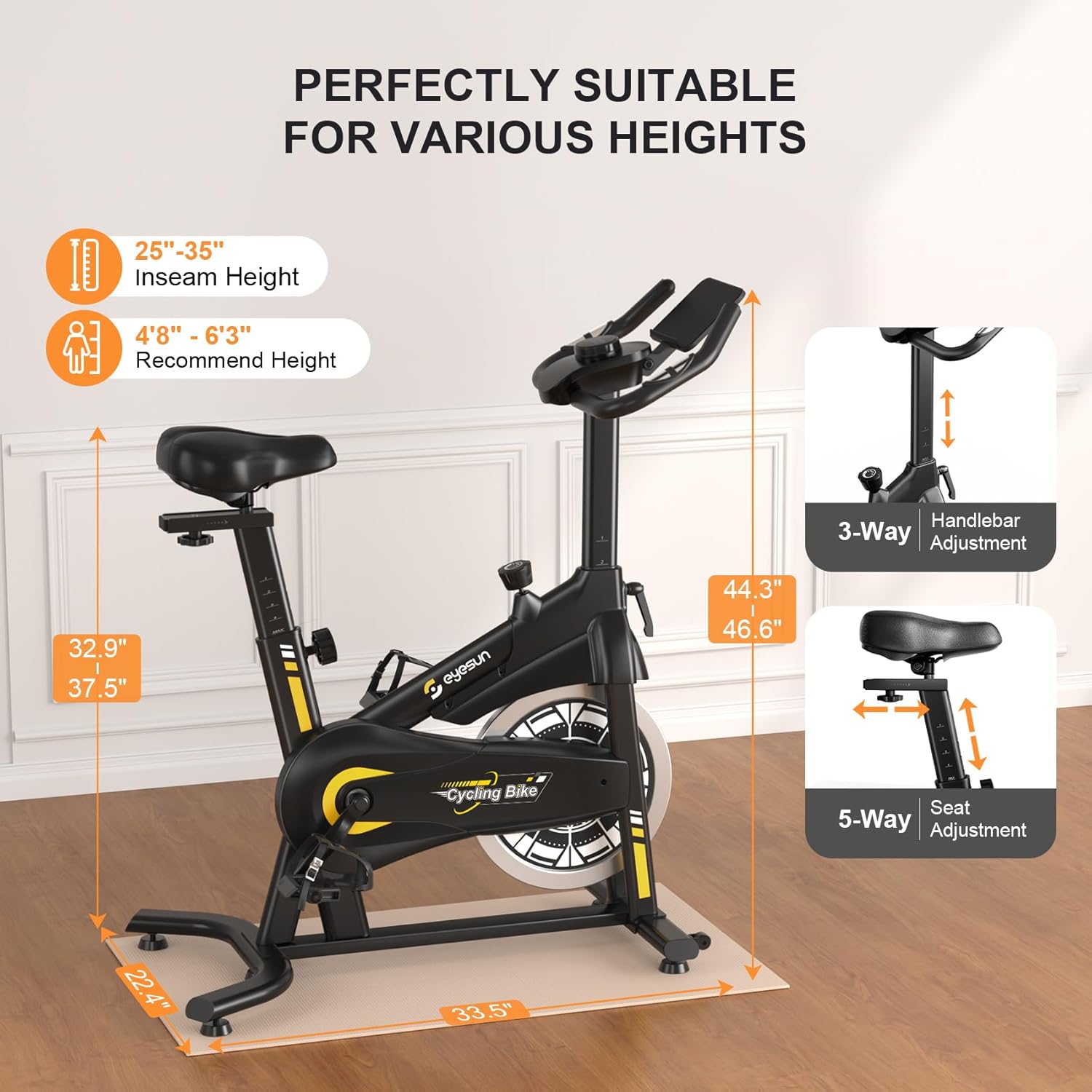 Fully Adjustable for the Whole Family: Featuring a 3-way adjustable non-slip handlebar, 5-way padded seat (fits inseam 25″–35″), and a wide resistance range, this bike offers a customized and comfortable ride for users from 4’8″ to 6’1″. Perfect for full-body workouts, weight loss, and improving heart and lung health—ideal for every family member.