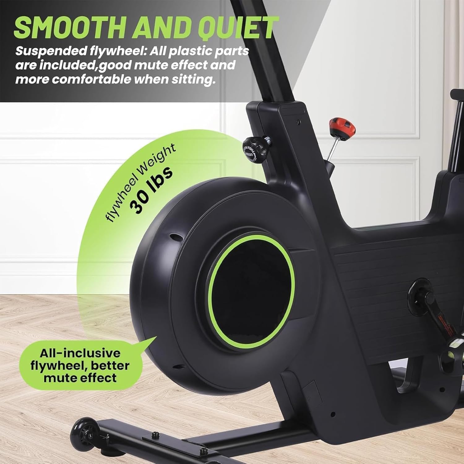 – Heavy-duty 30lbs flywheel for smooth, realistic cycling experience