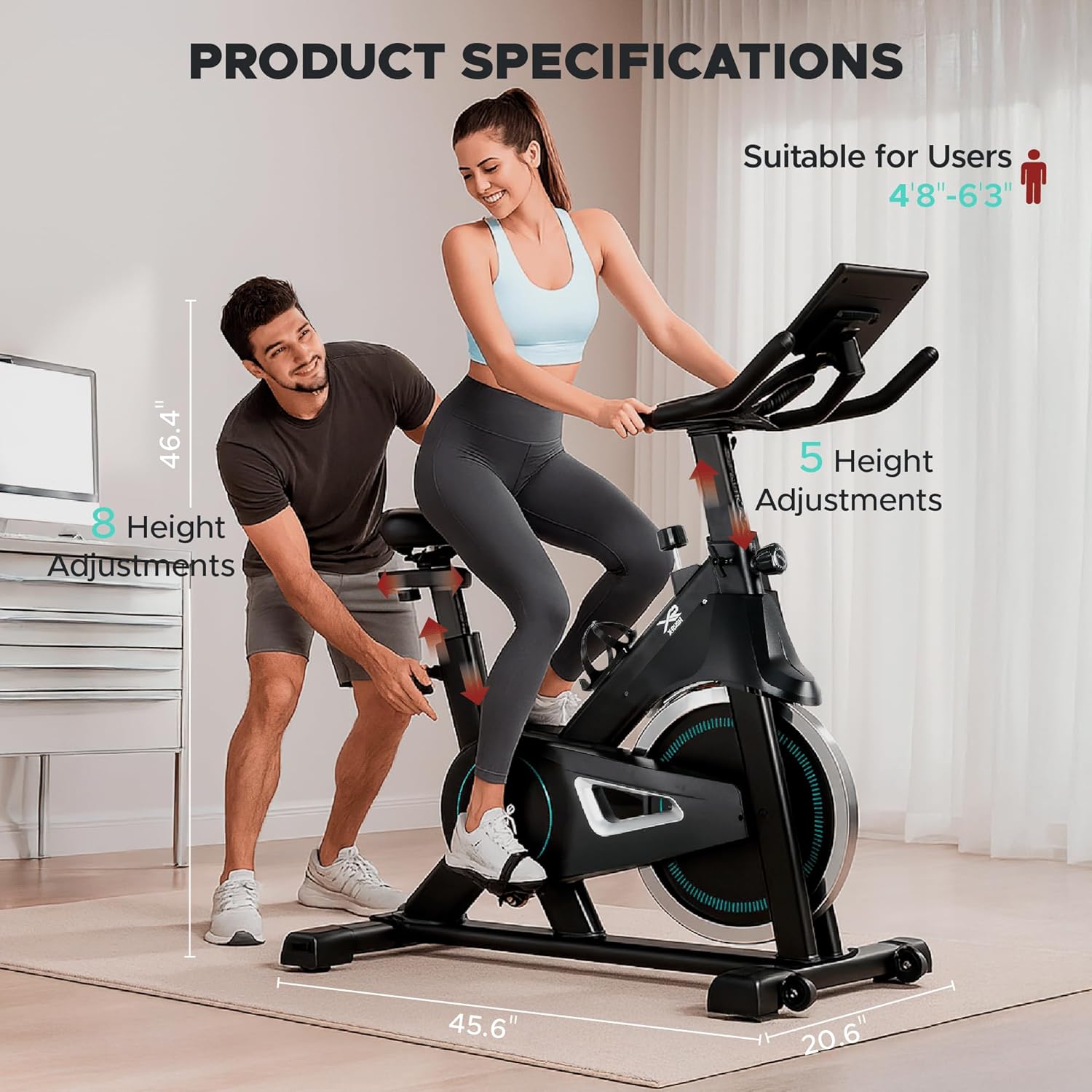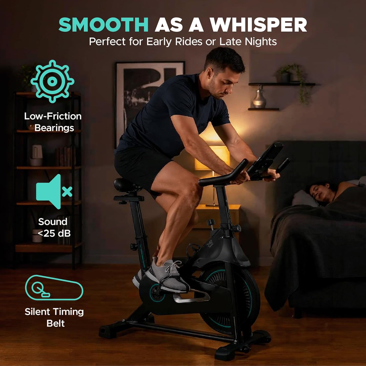 đźš´BUILT FOR COMFORT & PERFORMANCE: The X-RUSH exercise bike features a heavy-duty steel frame with a double-triangle structure for maximum stability. Supporting up to 264 lbs, it offers an infinite resistance system and a whisper-quiet belt drive for a smooth, silent ride. Perfect for beginners and advanced riders, it delivers a comfortable, safe, and effective indoor workout at home.