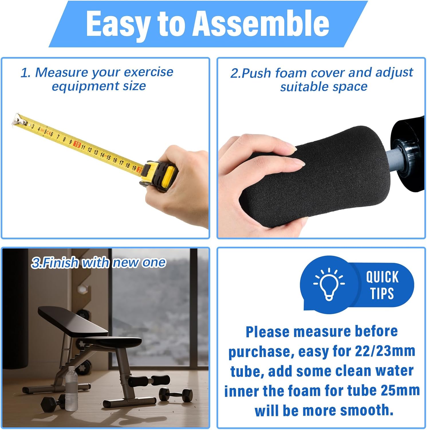 Kind Reminder: you will receive 8 pieces of foam roller for legs in black, enough quantity to meet your applying and replacement needs, you can also share them with your family; Please allow 1-2 mm measurement error and confirm whether it matches the corresponding sports equipment replacement parts before purchasing