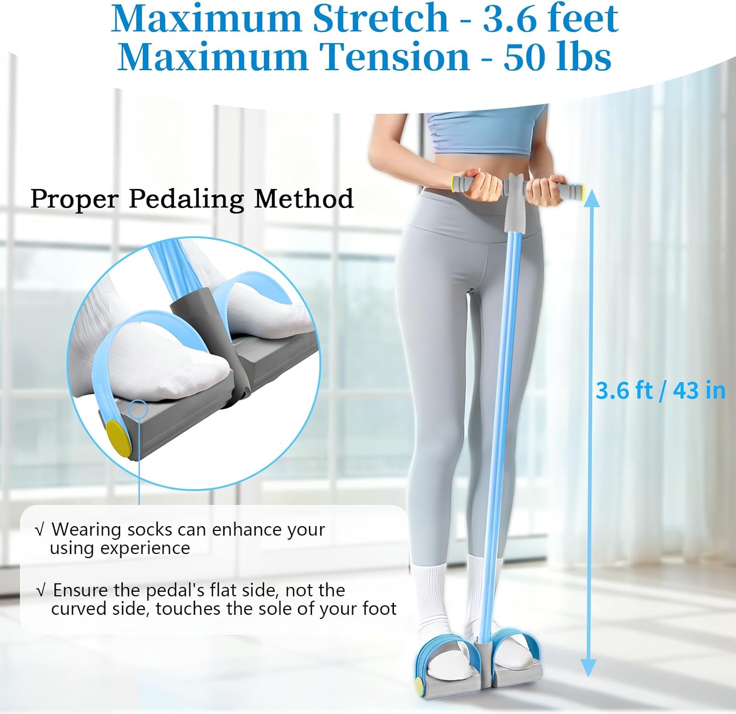 【Pro-Grade 6-Tube Resistance Band】Crafted with industrial-grade NBR rubber, our 6-tube pedal resistance bands with handles delivers 50lbs of tension and stretches up to 3.6ft – 30% stronger than standard 4-band models. Reinforced tubing prevents snapping during intense workouts, while the multi-layer design ensures lasting durability for daily use.