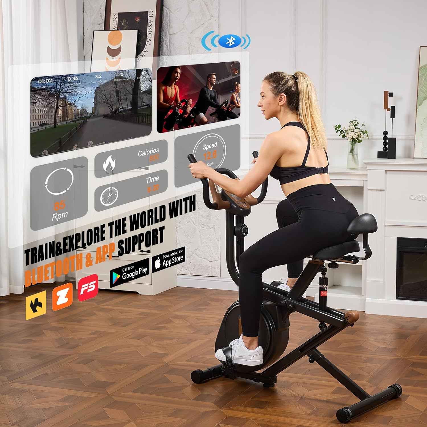 3 in 1 Exercise Bike,Squat Machine,8-level Adjustable Magnetic Bike for Home with App,Squat Rowing Machine, Low Noise Indoor Cycling Bike with 300lbs Weight Capacity,Home Workout Machine