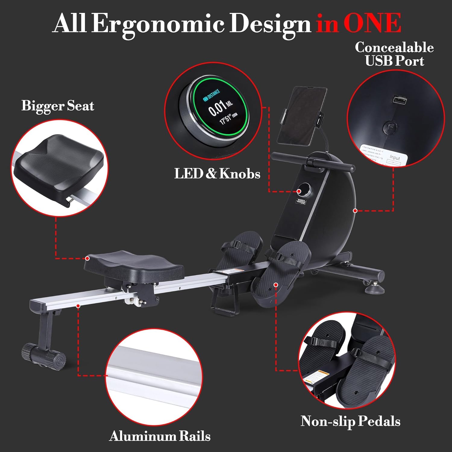 【Smart Performance Monitor】Digital display tracks time, distance, SPM, strokes, calories, watts & pulse via dual sensors. App-compatible for seamless data sync and goal tracking.
