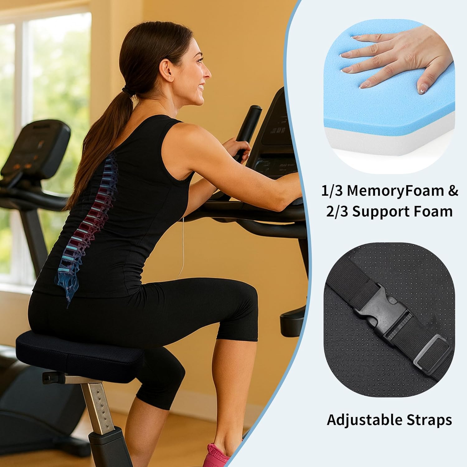 Non-Slip Secure Fit: Dual elastic straps and anti-skid rubber base keep the seat cushion securely in place even during vigorous pedaling or rowing sessions