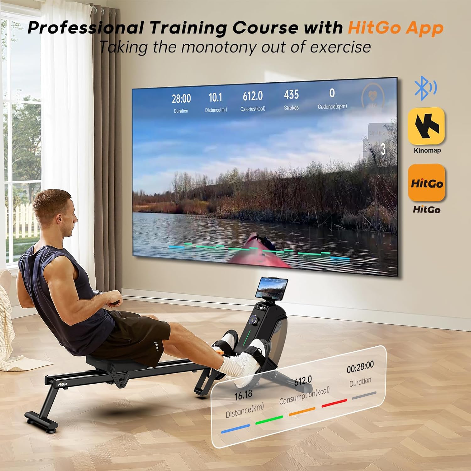 【App-Connected Interactive Training】Fully compatible with the HitGo App and KINOMAP, unlocking free workout courses, scenic rowing simulations, and customizable intensity programs. Enjoy global virtual rivers, guided sessions, and progress tracking right from your phone or tablet.