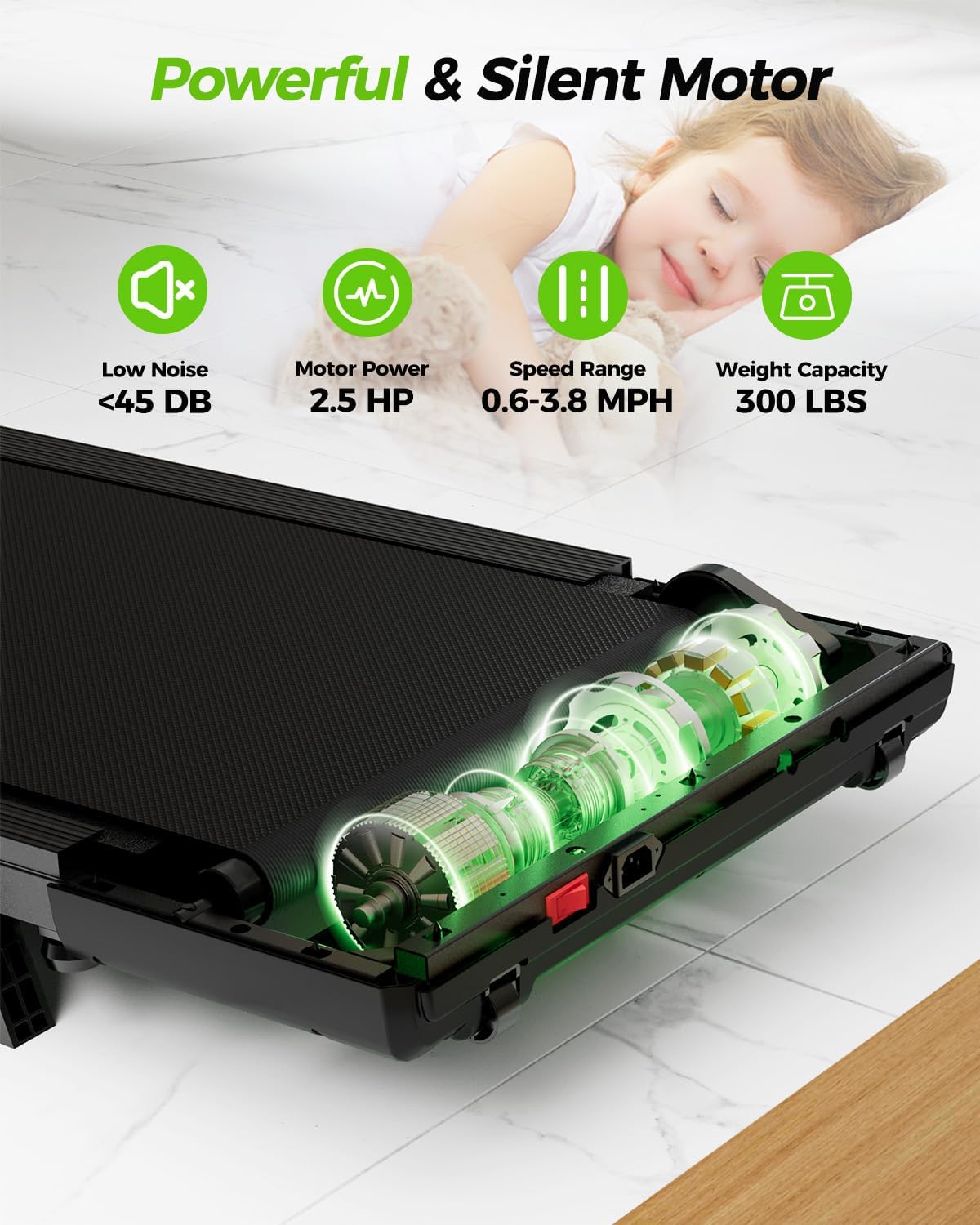 Powful & Quiet Moter: Walking pad treadmill is equipped with a 2.5 horsepower motor and can hold up to 300 lbs. Walking pad operates at less than 45DB, allowing you to use it in your office or home without worrying about disturbing others at rest or work. Enjoy a quiet and comfortable exercise experience with the treadmills for home small