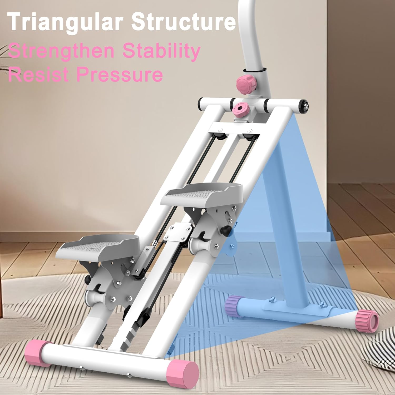 Stable Triangular Structure: Built with a robust triangular frame, this climber supports a maximum weight of 265 lbs, ensuring long-lasting durability. Anti-slip pedals and stable adjustable handlebars provide a safe, steady workout experience, preventing slips even during intense training. Sturdy construction ensures reliability for daily use.