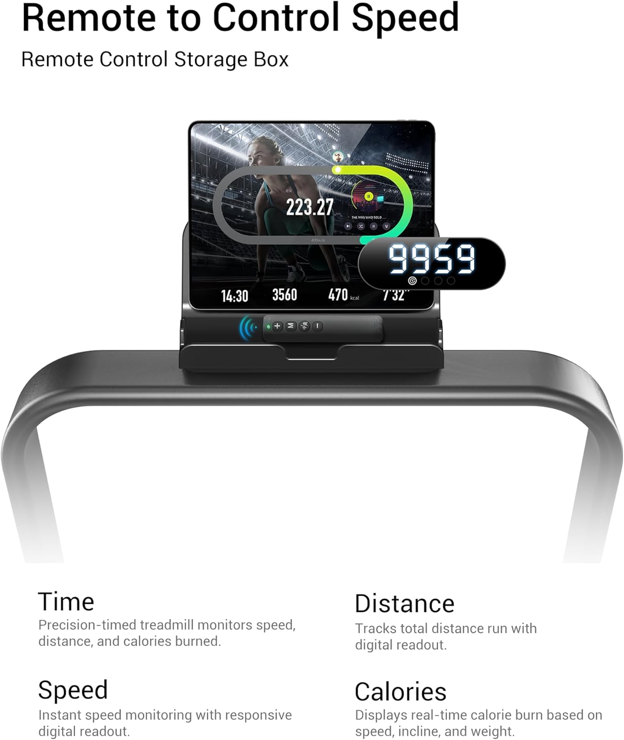 Space-Saving Foldable Treadmill Design: Achieve maximum space efficiency with this portable treadmill. Its ultra-slim profile, measuring just 4.3 inches when folded, allows for easy storage under beds or sofas. The front transport wheels enable effortless relocation, saving a significant amount of space compared to traditional treadmills. Perfect for small apartments and crowded offices