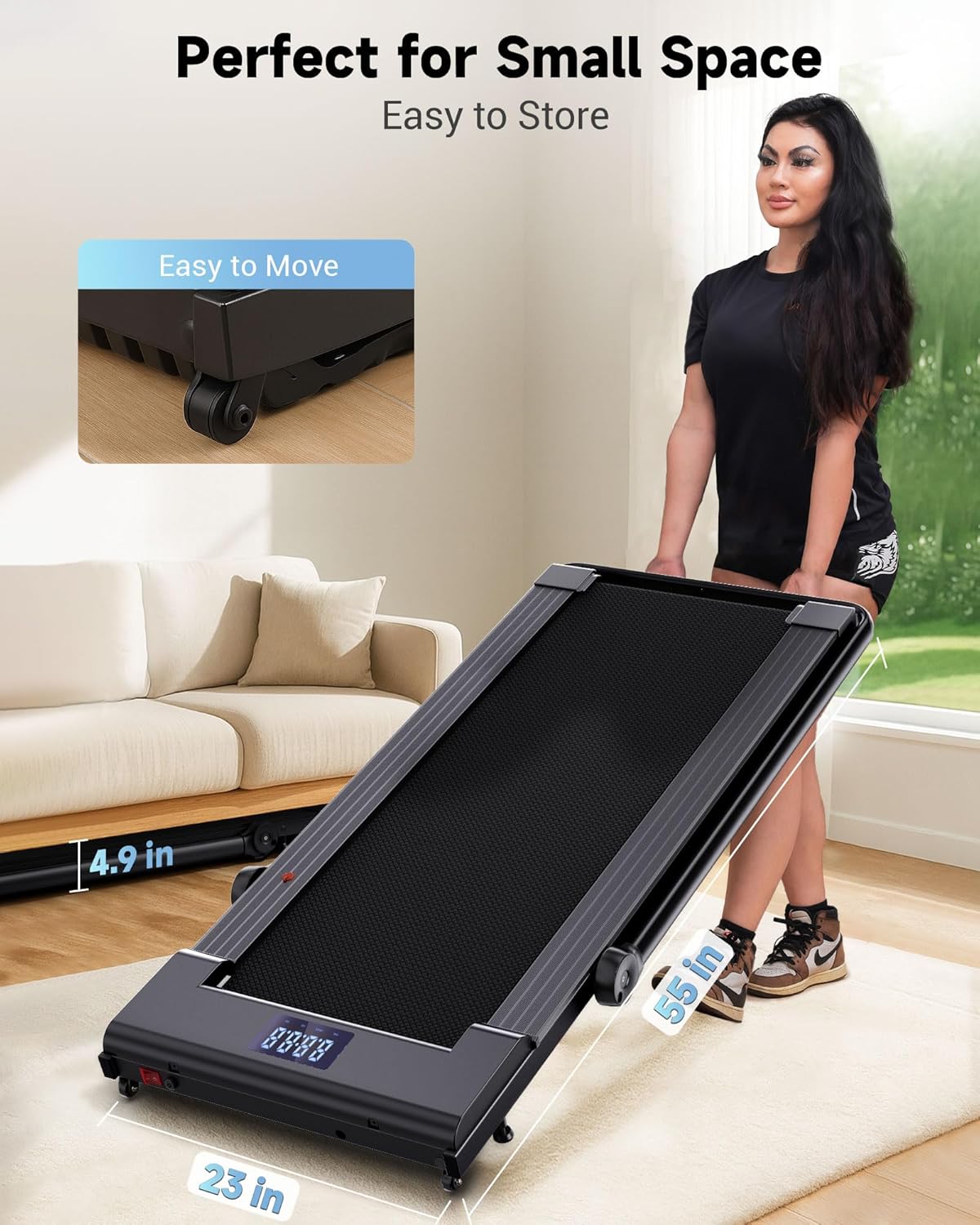 UP TO 8.7 MPH FOR WALKING & RUNNING: This 2-in-1 walking pad treadmill switches from 0.5–3.7 MPH for under desk walking to 8.7 MPH for running. Perfect as a compact treadmill or office treadmill for walking, jogging, and HIIT workouts in your home gym.
