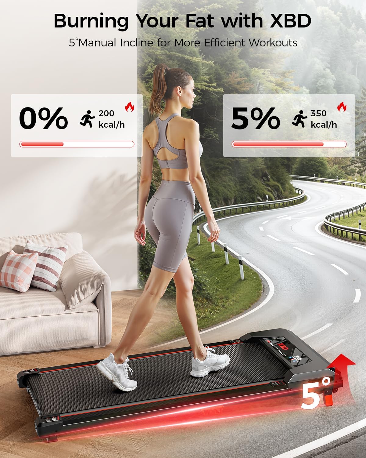 Walking Pad Treadmill,XBD Incline Walking Pads Under Desk 330 Lbs Capacity,2.5HP Portable Treadmill for Home,Remote Control and LED Display