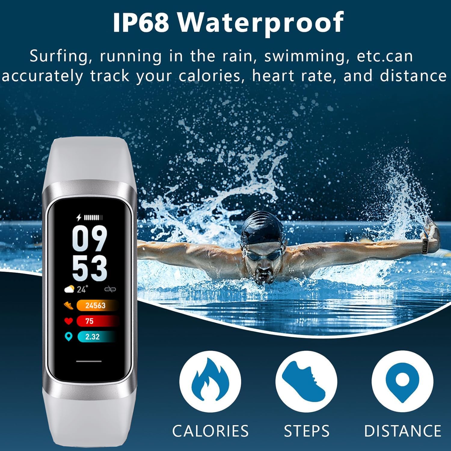 【24H Health Monitoring】Fitness Tracker With the function of monitoring heart rate and blood oxygen, you can track your health data 24/7 and help adjust your overall condition.The sleep tracker also analyzes your sleep quality, tracks your deep sleep, light sleep, and awake periods, rates your sleep quality, and helps you adjust your sleep habits.
