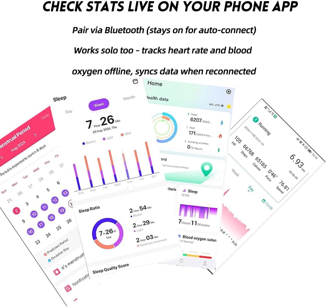 Tracks sleep patterns, heart rate, oximetry, activity and calories burned for complete health insights. - Professional Fitness Tracking